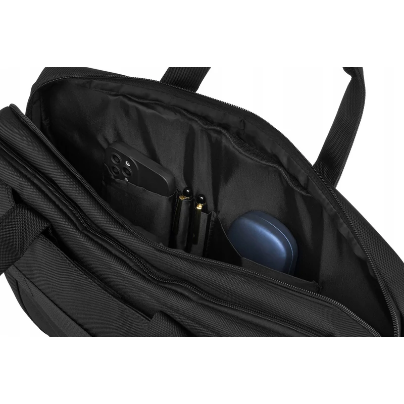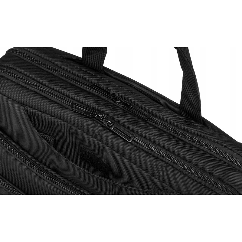 A táska 2 tágas, tömör cipzárral záródó rekesszel és 8 további zsebbel rendelkezik .