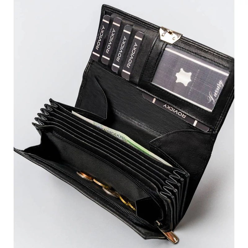 Ez a modell egy jól rendezett íróasztalhoz hasonlít, mert rengeteg zseb és rekesz van. Soha nem fog kifogyni a helyből a hűségkártyák, dokumentumok vagy családi fényképek elrejtéséhez.