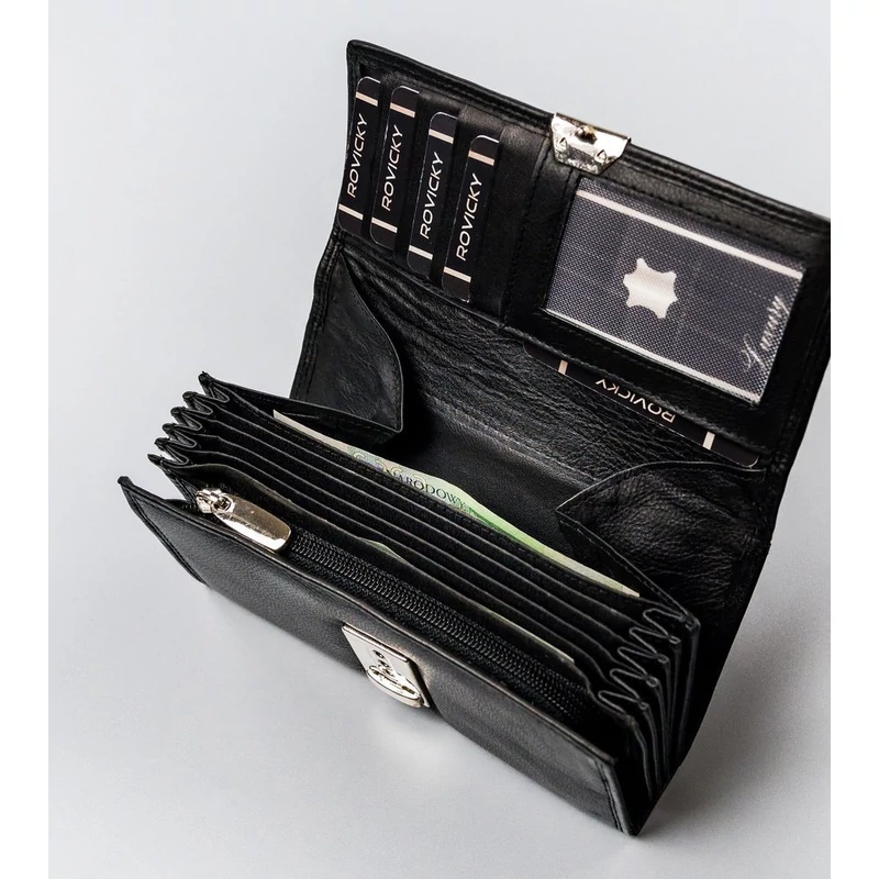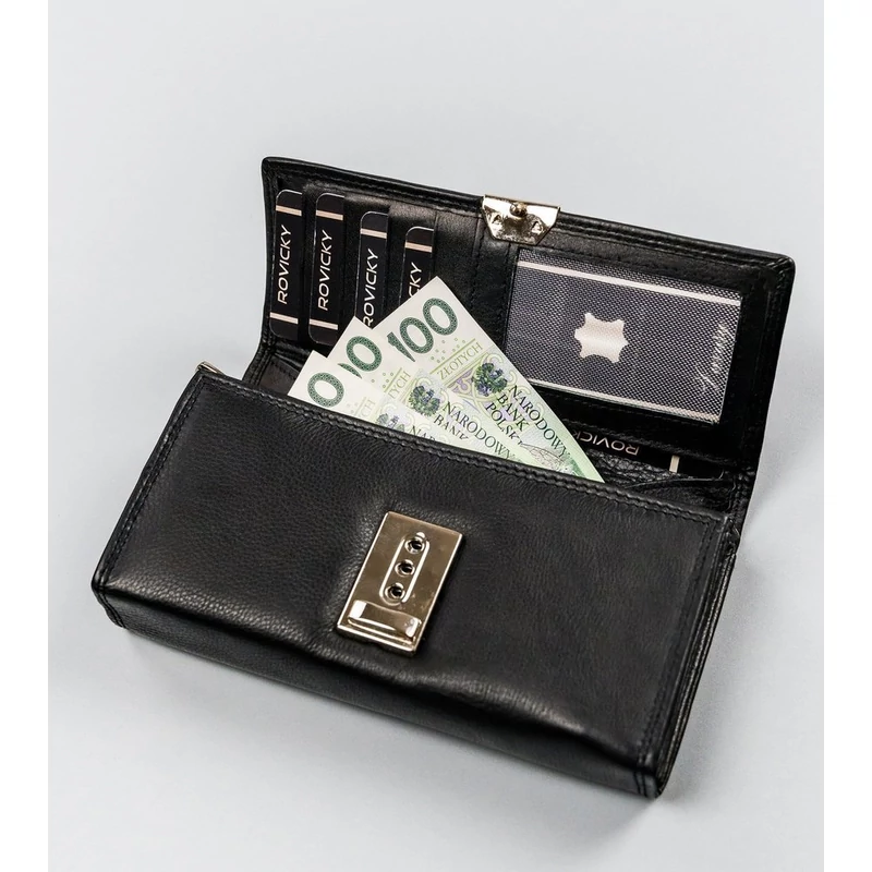 - 3 nagyon széles, nyitott zseb található a bankjegyek számára . Ez a számú zseb lehetővé teszi, hogy nagy mennyiségű papírpénzt helyezzen el pénztárcájában. Ez a számú rekesz lehetővé teszi a pénz pénznemek szerinti csoportosítását is, ha a lengyel zlotynál többet használ.