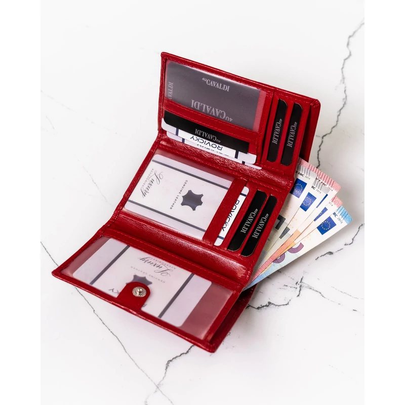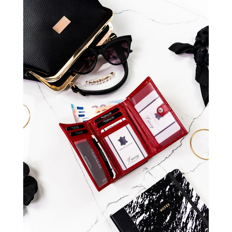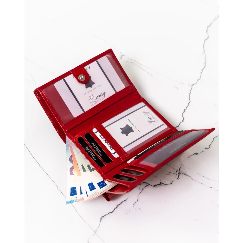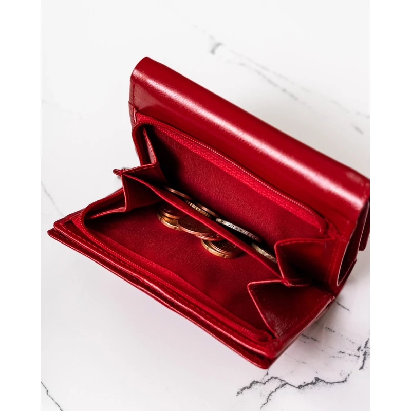 - Vörös elegancia | Időtlen stílusú pénztárca érzéki vörös színben. A vízszintes helyzetű modellt tartós és szilárd retesz rögzíti.