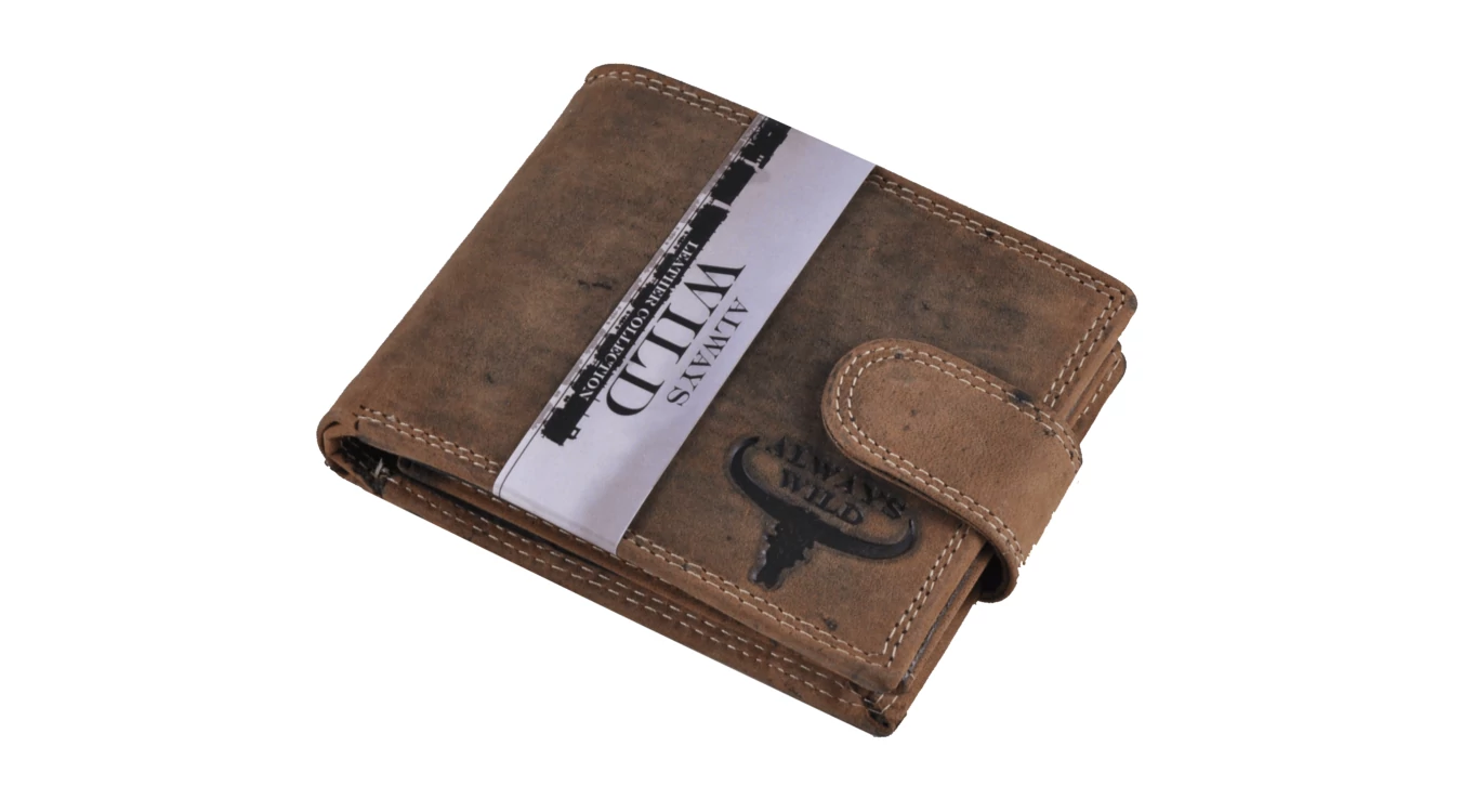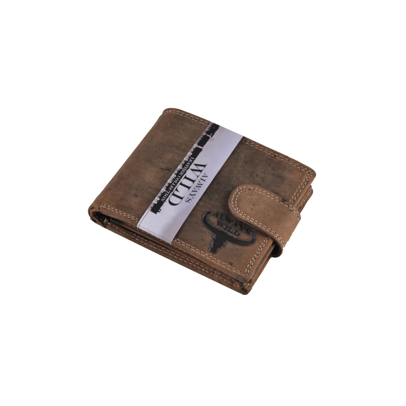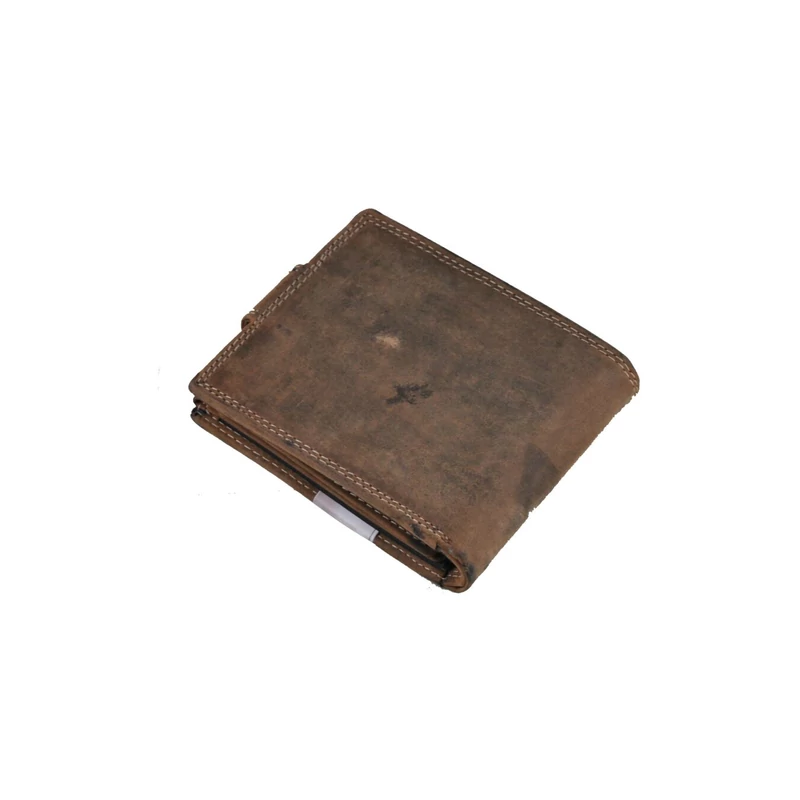 Férfi pénztárca kiváló minőségű, koptatott "hunter" bőrből, amelyet egy dupla, színes varrás díszít. Az elrendezése praktikus és klasszikus: Fedele patentos átkapcsolóval nyitható. Két rekeszes papírpénztartóval, kettő igazolványtartó zsebbel, egy patenttal nyíló aprópénztartóval és összesen 10 kártyatartó hellyel rendelkezik, ebből 3 "ablakos"; a kártyatartó része patenttal nyílik és kifele lebeg. A pénztárca gerincén belül egy cipzáras zseb kapott még helyet, ahová nagyobb értékű papírpénzünket tudjuk elrejteni.