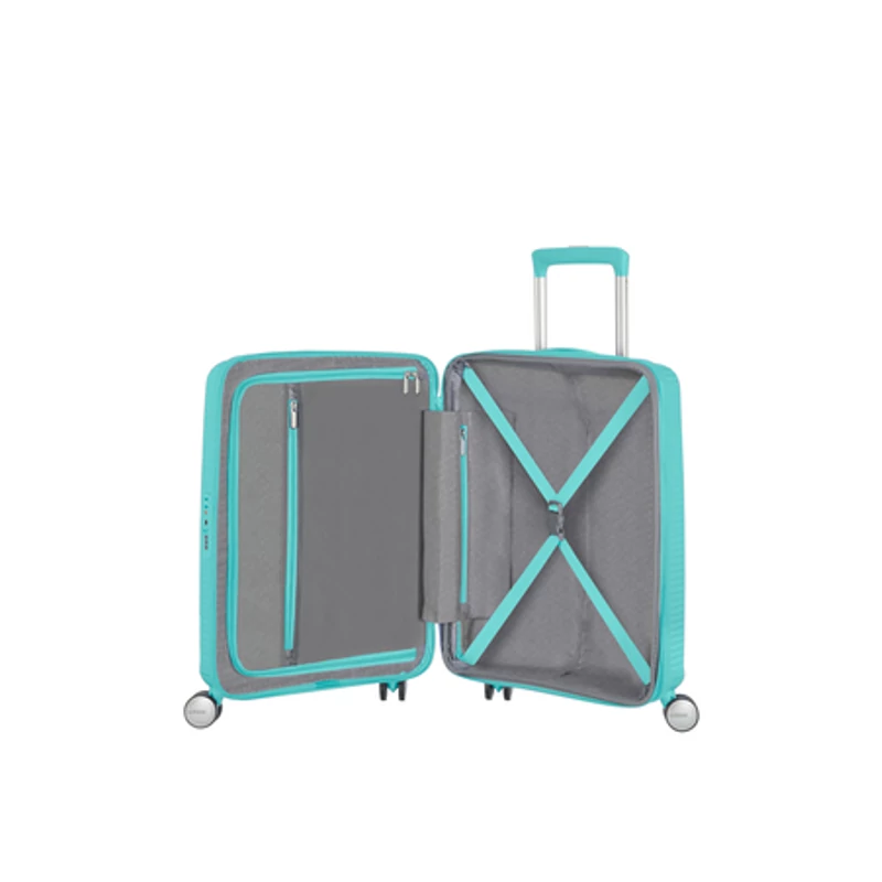 Az American Tourister legújabb bőröndje a Soundbox, amely könnyű, ellenálló és biztonságos. Extra könnyű polipropilén anyagból készült.