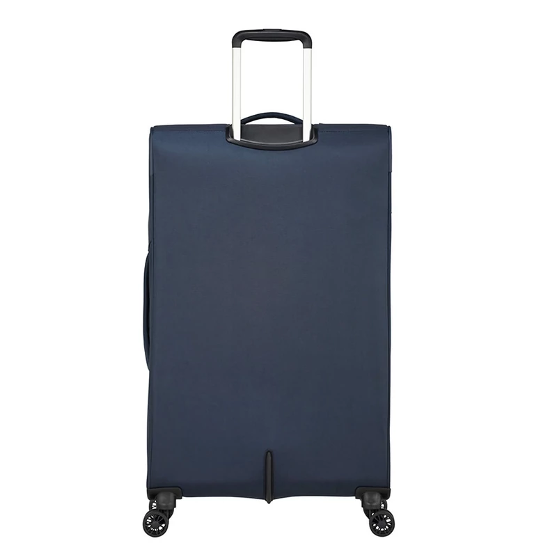 Erős, strapabíró American Tourister utazóbőrönd 100% poliészter anyagból. Nagyméretű bőrönd, kb 2 hetes utazásokhoz ideális. Dupla 4 kerekes, így nagy mérete ellenére könnyedén utazhatsz vele. Beépített TSA zárszerkezet adja a biztonságot. Kis kézi fogantyú a bőrönd oldalán és tetején is. Bővíthető bőrönd. Belseje tágas, praktikus tárolórészekkel ellátott.