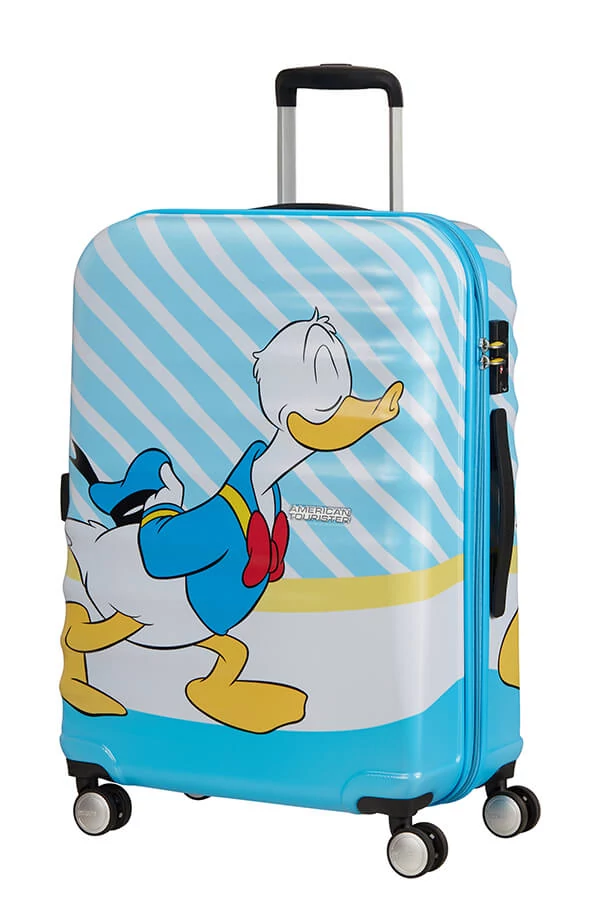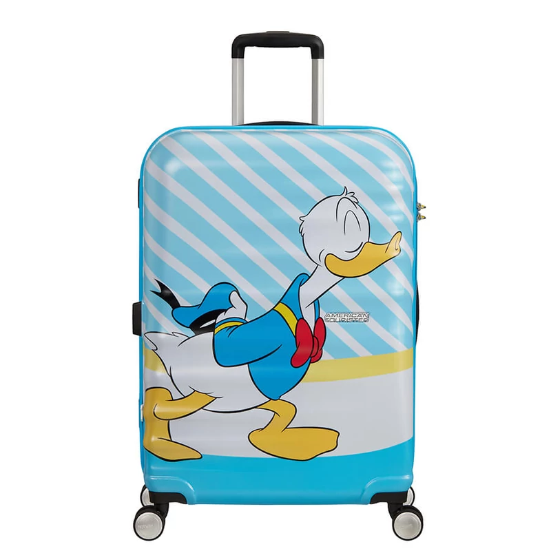 Donald kacsa Disney bőrönd kicsiknek és nagyoknak. Legendás mesehőseinket idézik a Wavebreaker legújabb bőröndjei. Karcálló, PVC mentes ABS anyagból készültek, beépített TSA zárral. Belseje esztétikus, igényes és praktikus. 2 oldalra pakolható. Ez az 67 cm magas utazóbőrönd ideális repülőgéppel utazóknak feladott poggyászként, de belföldön is komfortosan utazhatunk vele. Kb 1 hetes utazásokhoz optimális méret. 3 év globális garancia.