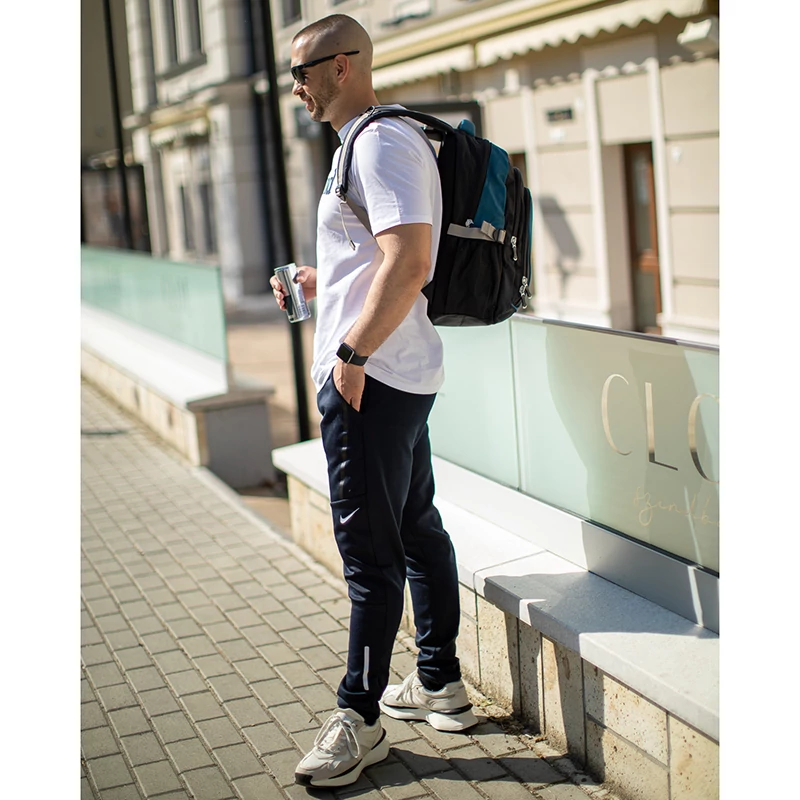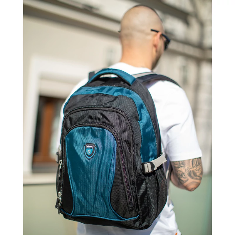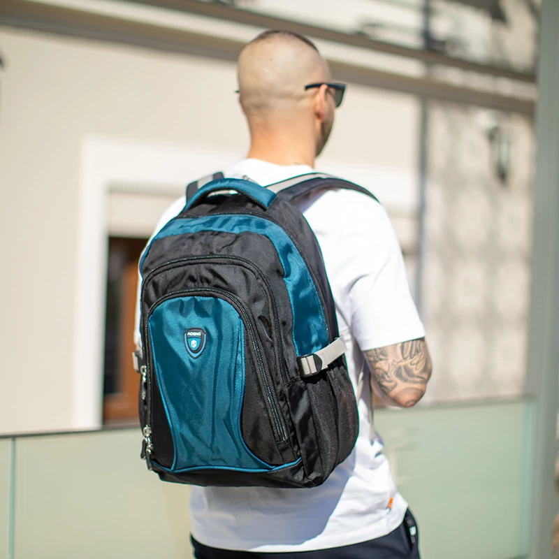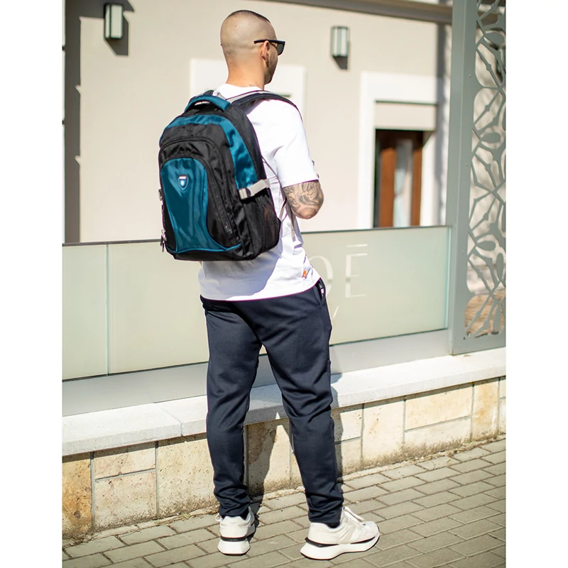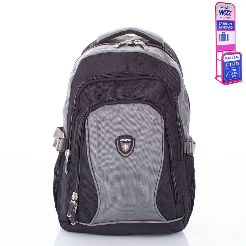 Vagány, akciós kézipoggyász méretű laptoptartós táska akciós áron, 10000 forint alatt. Modern, igényes stílusban.Erős vászon anyagból. Praktikus tárolórészekkel, sok zsebbel, sötétkék/fekete színben. Párnázott vállpánt és hátrész a kényelmes viseletért.  2 oldalán palacktartó zseb a külső részen. 4 cipzáros tárolórész. A második rekeszben különböző méretű belső zseb található, akár irattartó,telefon,íróeszköz,pénztárca,kulcsok tárolására alkalmas.  Kiránduláshoz, szabadidős tevékenységekhez, utazáshoz remek választás. A hátizsák speciális mérete lehetővé teszi, hogy ingyenesen felvigyük a WizzAir légijáratainak fedélzetére. Fedélzeti hátizsák, amely legtöbb fapados légitársaság fedélzetére felvihető.