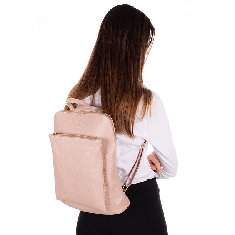 A lista legutolsó, de legnagyobb darabja ez a púder színű valódi bőr hátizsák, amelyben elférnek akár az A/4-es méretű füzetek és iratok is. Elől egy cipzáras fiókja van, melyben egy Ipad vagy tablet is elfér. A belsejében pedig egy cipzáras és két kisebb nyitott zsebe van. A hátulján van még egy nagyjából a táska felével megegyező méretű cipzáras rész. Teljesen átlátható, jól pakolható hátitáska. Három funkciós,hiszen vállpántja átalakítható, így oldaltáskaként is hordhatjuk, de kézi fogójával kézben is vihetjük. Webshopunkból ezen a púderen kívül további 12 más színben is megrendelhető!