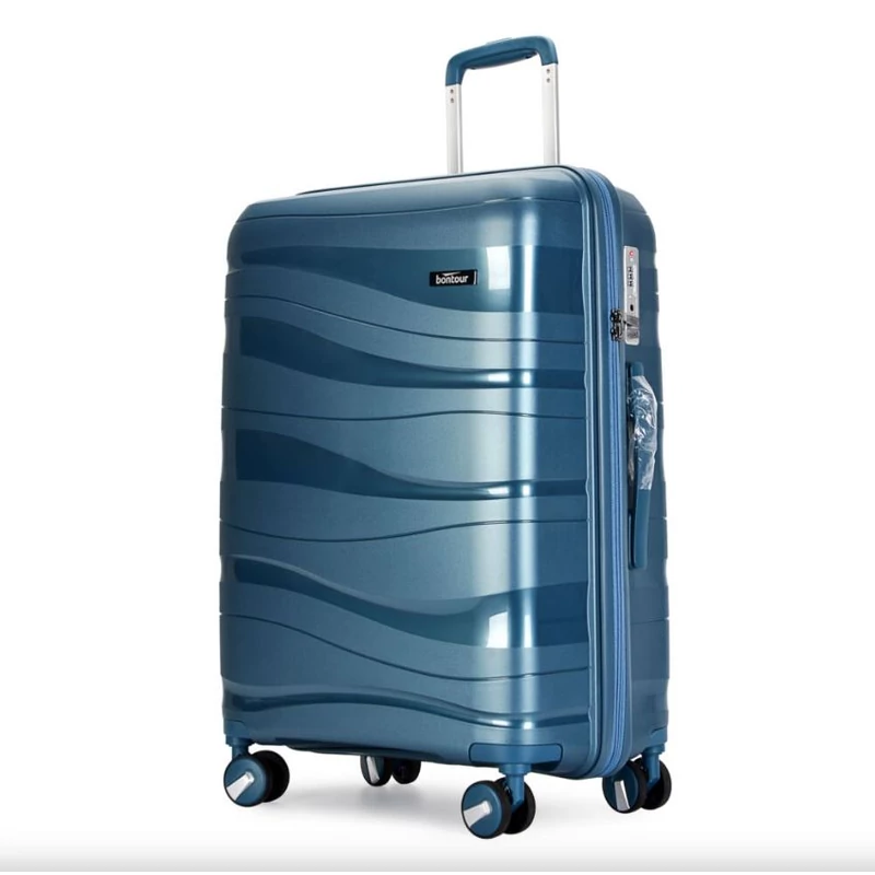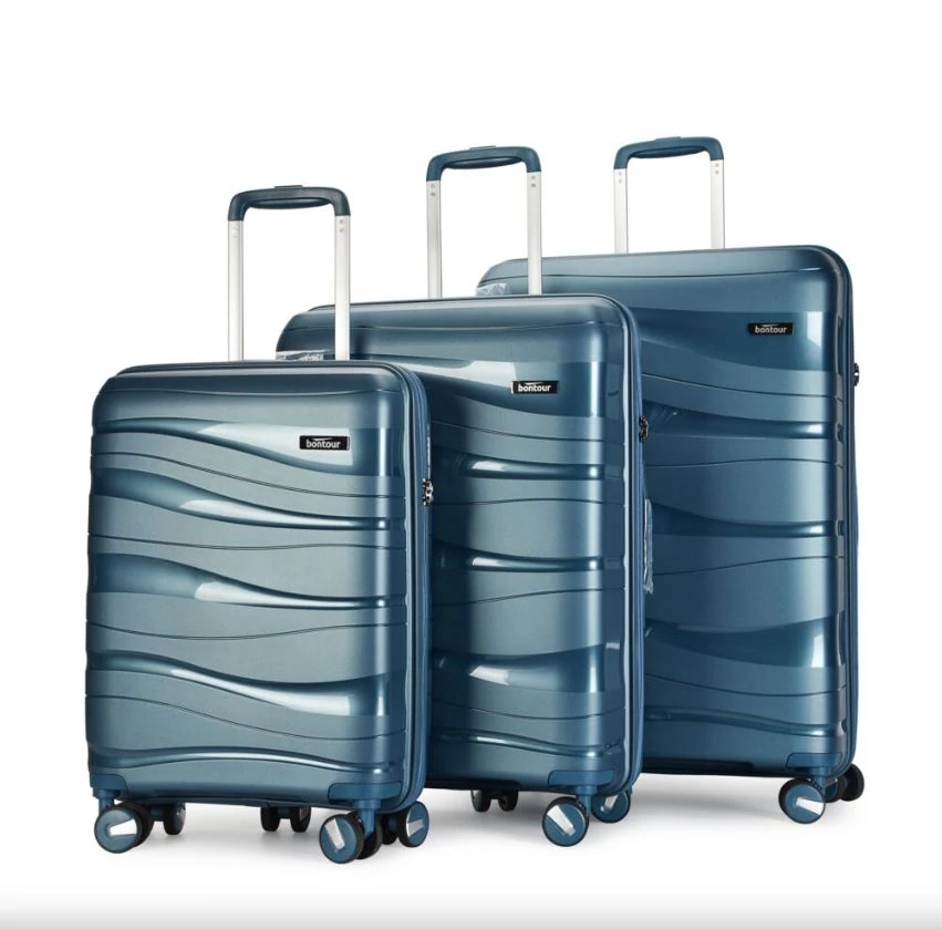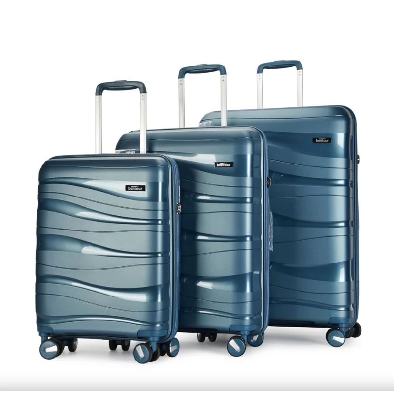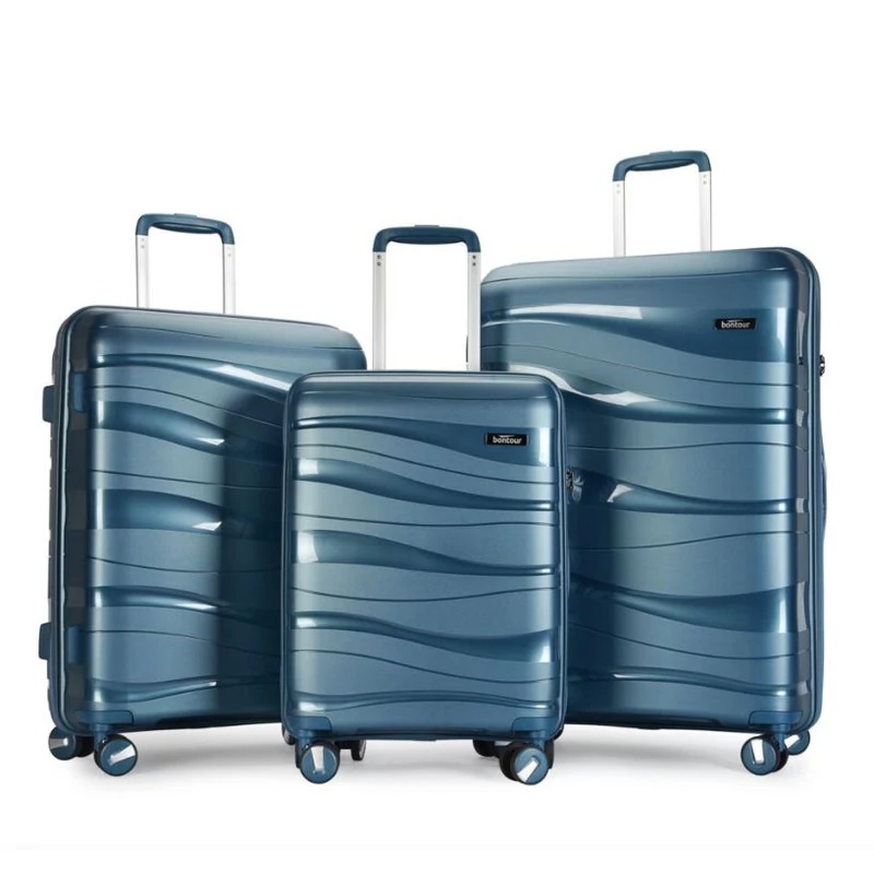 BONTOUR “Flow” 3 db-os Bőrönd Szett, 4 kerekes gurulós bőrönd számzárral, utazó poggyászkészlet Polipropilén anyagból