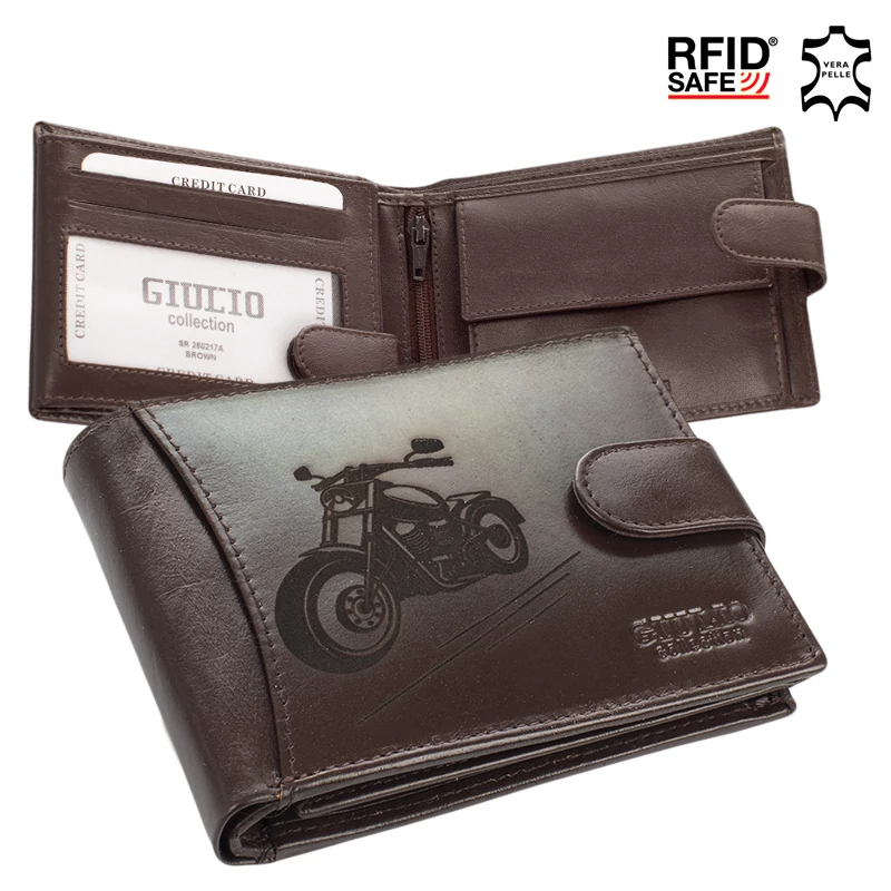 Bőr férfi pénztárca Motoros mintával RFID rendszerrel Díszdobozban ( 8 kártyatartó )