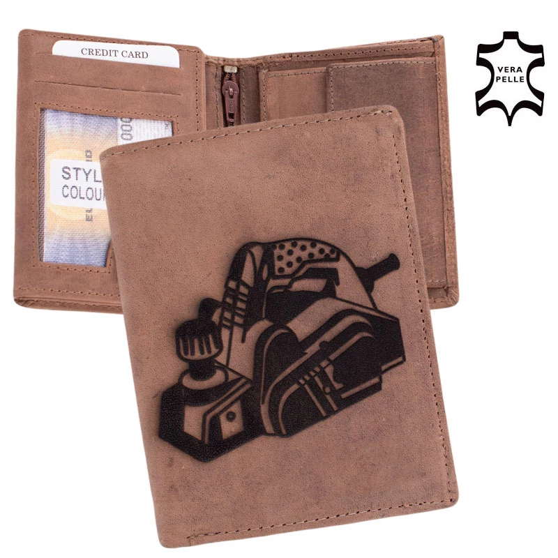 Bőr pénztárca asztalos mintával díszdobozban