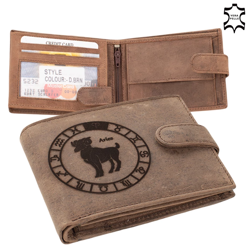 Bőr pénztárca barna színben Horoszkóp mintával RFID védelemmel Kos 5702-aries