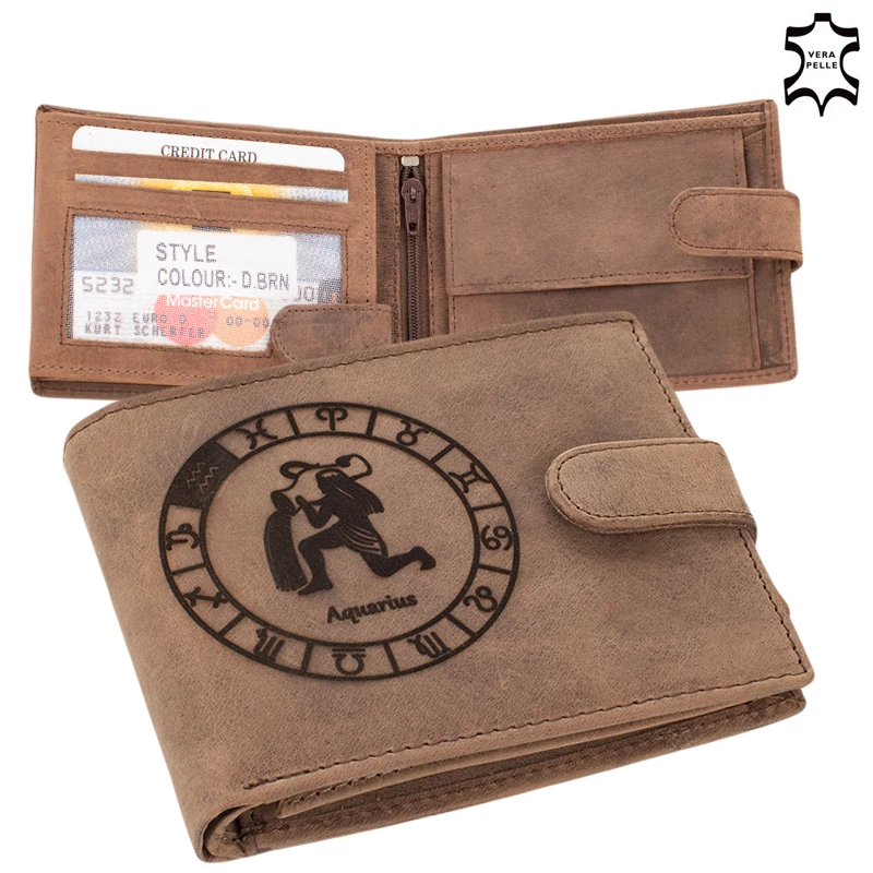 Bőr pénztárca barna színben Horoszkóp mintával RFID védelemmel Vízöntő 5702-aquarius