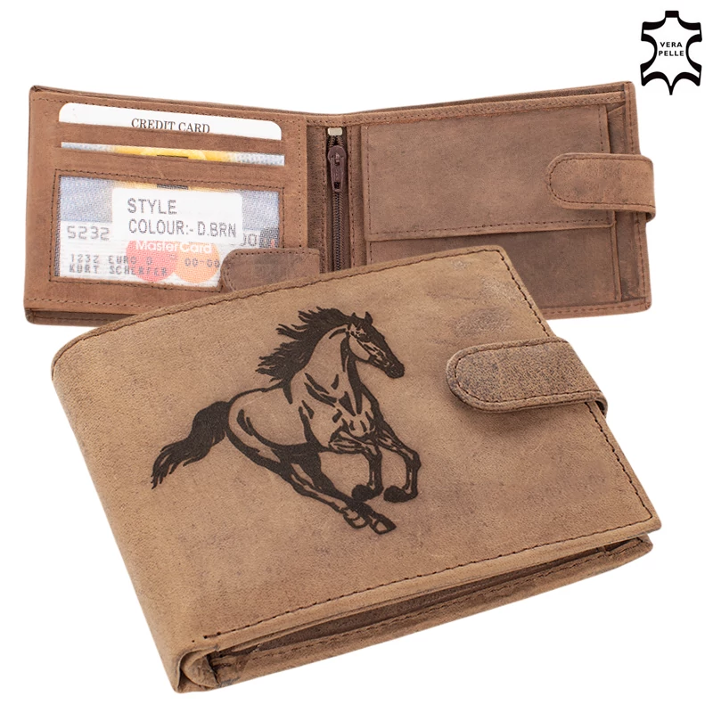 Bőr pénztárca barna színben lovas mintával RFID védelemmel 5702-horse