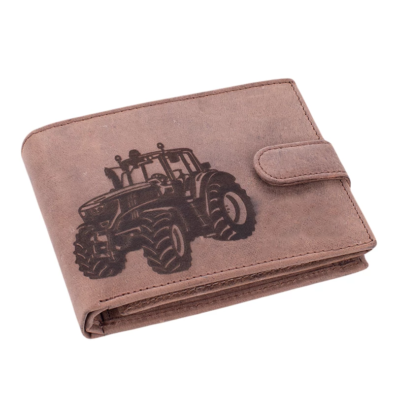 Bőr pénztárca barna színben traktor mintával RFID védelemmel díszdobozban 5702-tractor-1