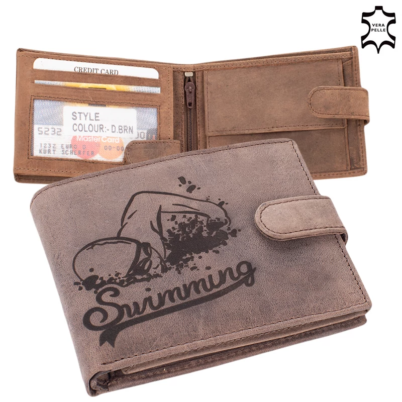 Bőr pénztárca úszás mintával díszdobozban RFID védelemmel 5702-swimming