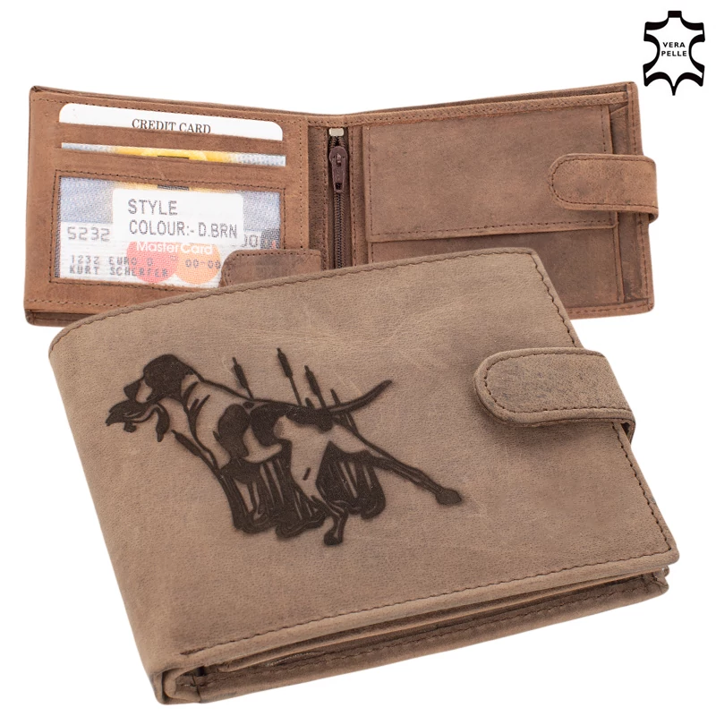 Bőr vadász pénztárca barna színben vadászkutya mintával RFID védelemmel 5702-dog-1