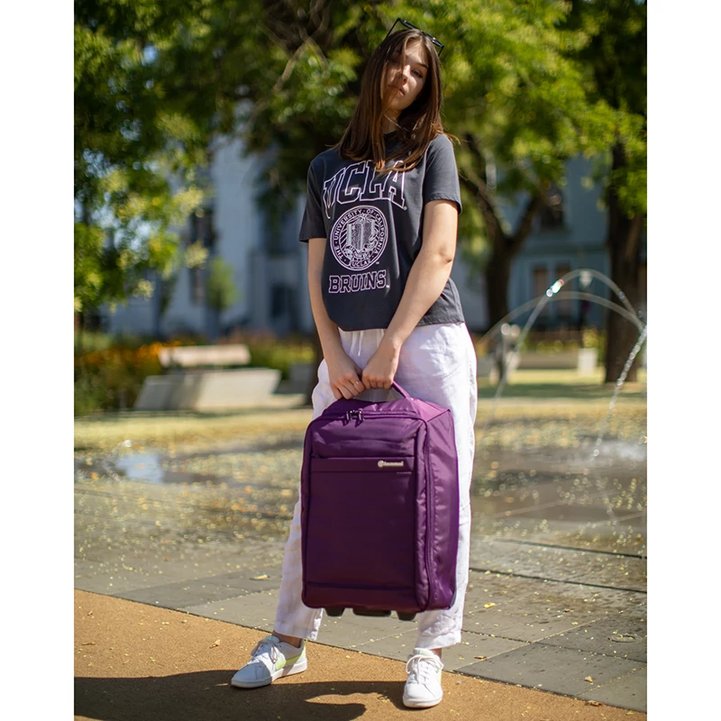Benzi összehajtható kétkerekes kabinbőrönd. Teleszkópja kihúzható, állítható. Kényelmesen emelhető a bőrönd tetején elhelyezett szivacsos kézifogó segítségével. Elől egy cipzáras extra rekesz segíti a pakolást. A kabinbőrönd speciális méretének köszönhetően a legtöbb légitársaság fedélzetére felvihető. Amikor nem használja a bőröndöt, a termék összehajtásával sok helyet megtakaríthat szekrényében.