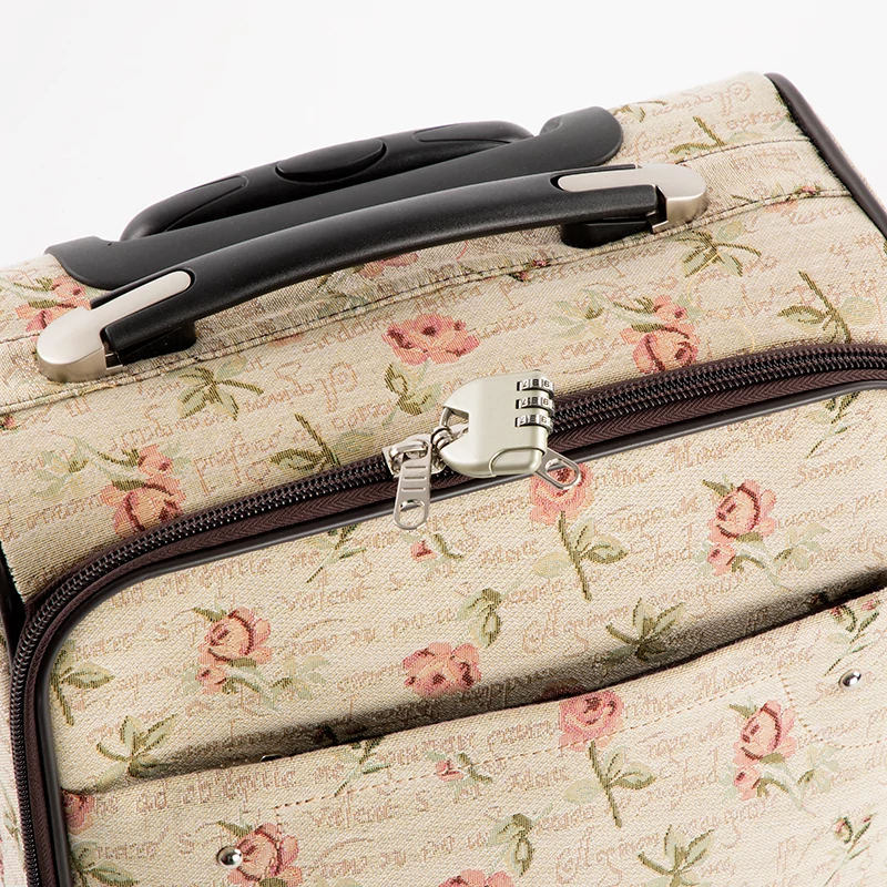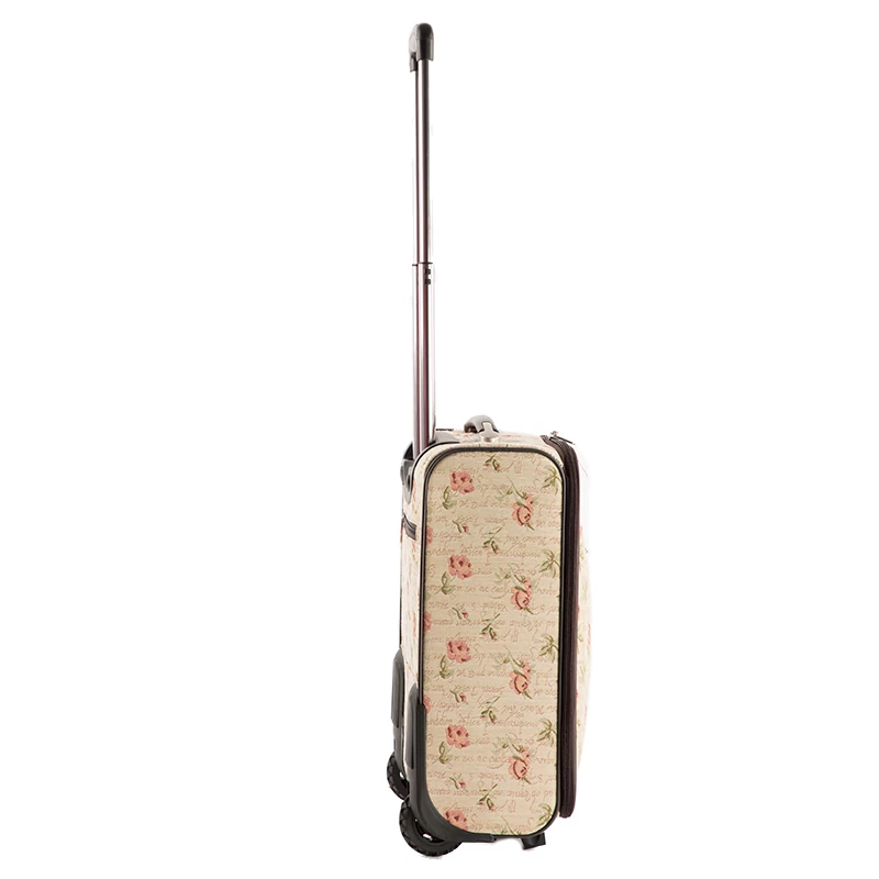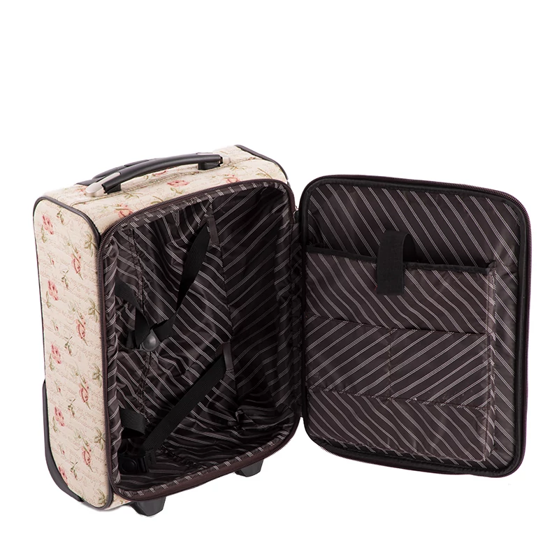 Ez a színes, virágos bőrönd kabin méretű, amely tökéletesen megfelel a Wizzair és Ryanair repülőgépek kabintáskaméreteinek. A bőröndnek egyedi rózsás mintája van, ami igazán feltűnővé teszi az utazások során. Az anyag minősége nagyon jó, és tartós is. A biztonsági zárak segítségével megakadályozhatjuk a cuccaink ellopását. A hordozható fogantyú segítségével könnyedén mozoghatunk vele az utazás alatt. Az OM_338-rózsás bőröndben rengeteg hely van mindenfajta dolog számára, így nem kell aggódnunk amiatt, hogy nem fér el mindenünk benne. Ez a praktikus és stílusos bőrönd ideális viselet lesz az utazni vágyónak!
