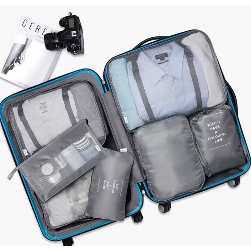 Ez a 8 db-os bőröndrendező táskaszett kiválóan alkalmas utazásokhoz. A szettben található 8 méretben különböző táska segítségével rendszerezheti és szortírohatja a ruháit, így megkönnyítve az utazás során való csomagolást. A táska anyaga vízzel és sérülésekkel ellenálló poliészer, amelynek köszönhetően tartós és strapabíró. Az egyes táskákat egymásba helyezve nagyobb helyet foglalnak el, így egyszerre akár nagyobb mennyiségű ruhadarabot is magukkal vihetnek az utazás alatt. A terméket szürke szinben lehet megvásárolni, cikkszama N-8-grey.