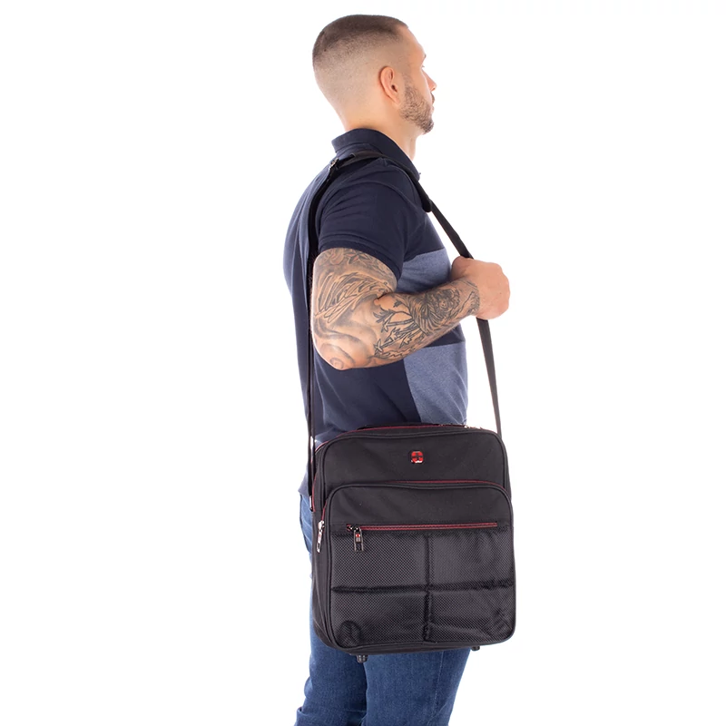 Szép, jó minőségű termék. Több rekesszel és Ideális méretekkel rendelkezik: A4-es iratok is kényelmesen elhelyezhetők benne, kellően széles középső tárolótér praktikus felhajtható alsó merevítőlemezzel. Jól kialakított, kellemes viseletű vállszíj.