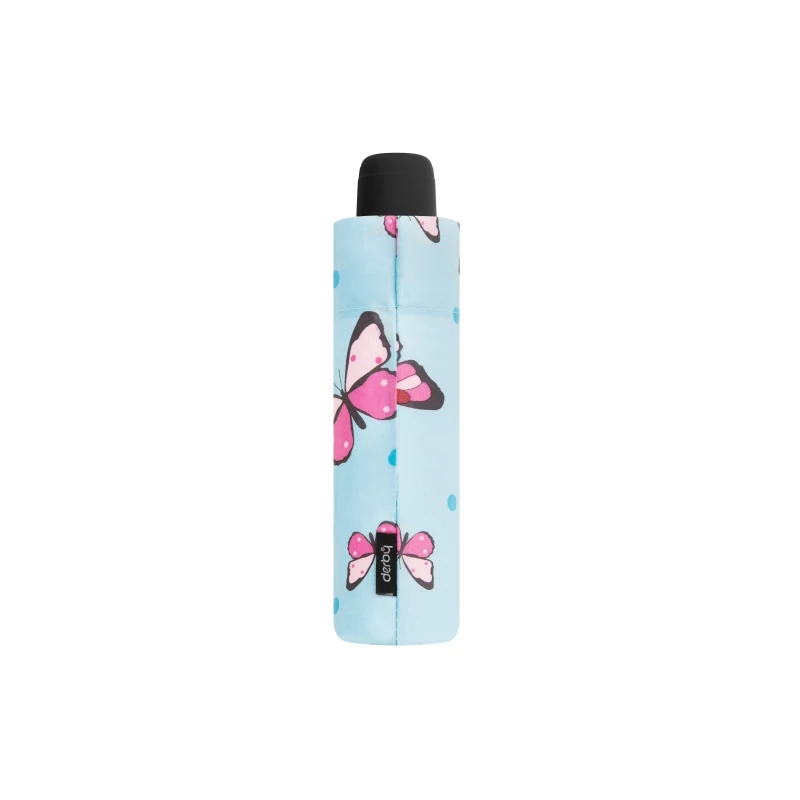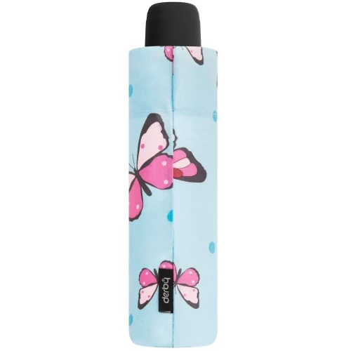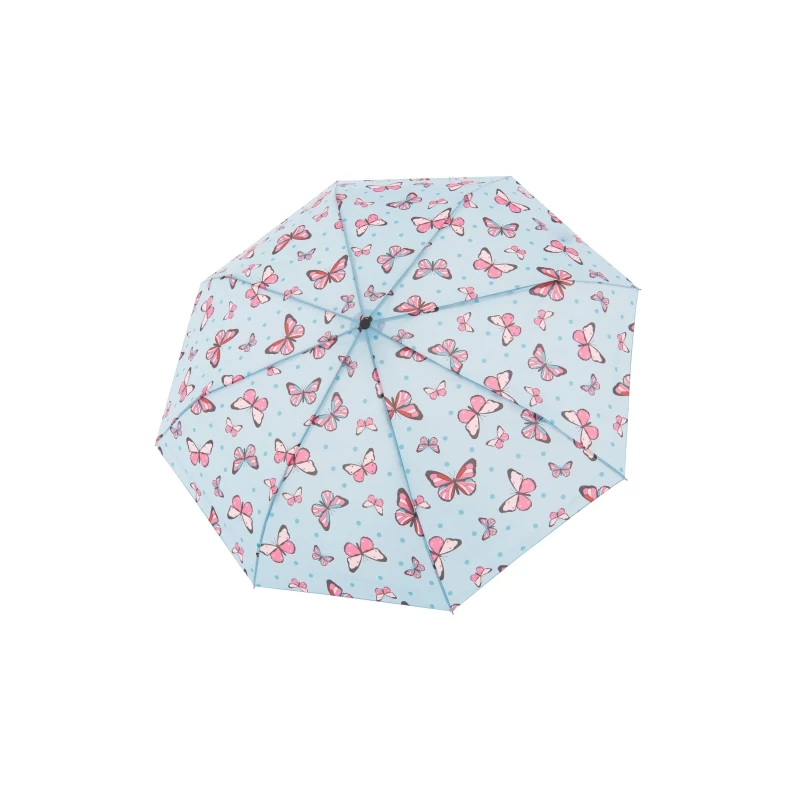 Derby kézi nyitású női esernyő. Könnyű, kényelmesen elfér táskájában. Bájos, pillangó mintás megjelenése gyorsan meghódította a hölgyek szívét.