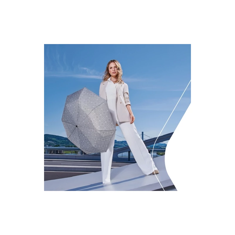 Doppler Fiber Magic Clear automata női esernyő. Átmérőjének köszönhetően valódi védelmet nyújt az esőzés ellen. Az esernyő könnyű kezelhetőségét az oda-vissza automatika biztosítja. Az esernyőt 100 km/h szélcsatornában tesztelték. Elegáns mintájának köszönhetően gyorsan meghódította a hölgyek szívét.