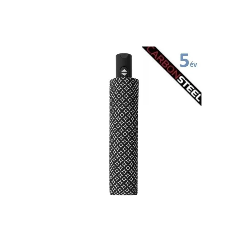 A Doppler Magic Minimal Carbonsteel automata női esernyő tartós, de könnyű is. Lehet az acél súlya olyan, mint az alumíniumé? Egy speciális gyártástechnológiai fejlesztés eredményeként a Doppler Carbonsteel esernyők esetében ez valóban lehetséges. A könnyű súlyuk mellett az esernyők - széntartalmuk miatt - rendkívül rugalmasak, de egyidejűleg stabilak, masszívak is. A termékek 150 km/h szélcsatornában teszteltek. A gyártó 5 év garanciát biztosít a Carbonsteel esernyőkre.