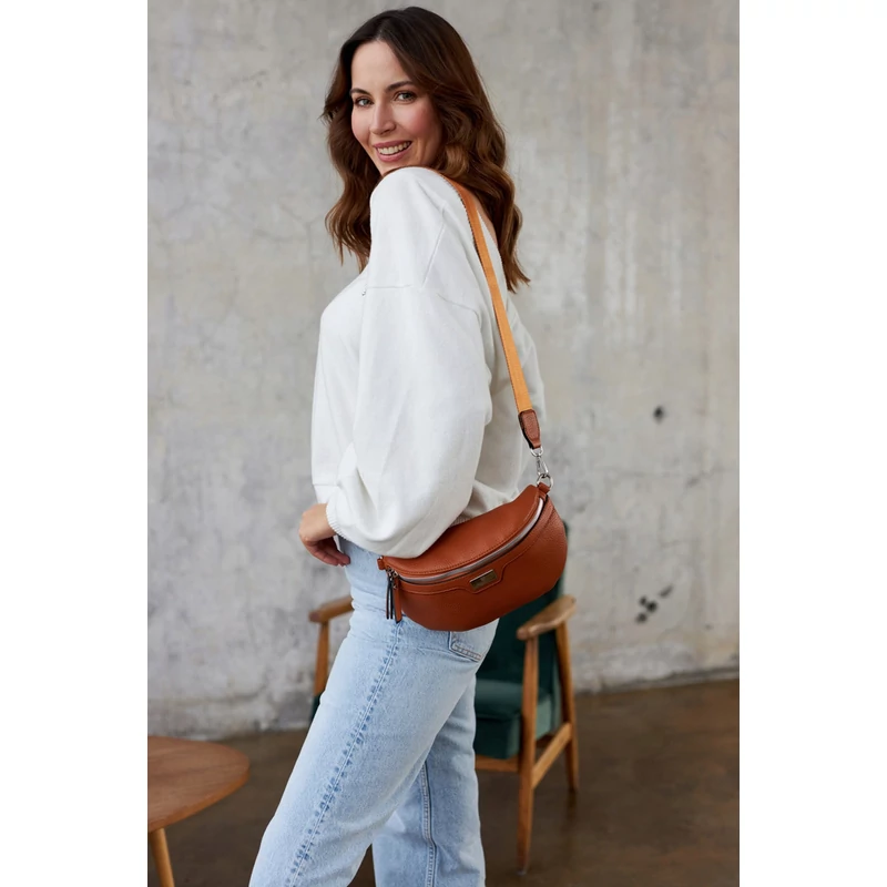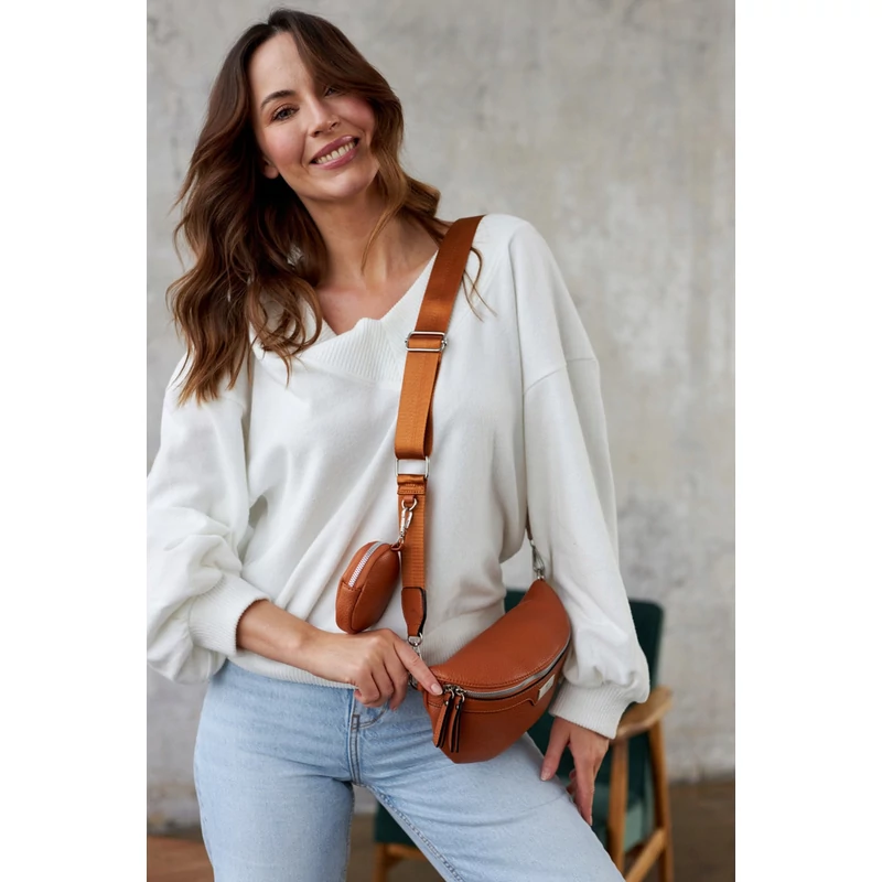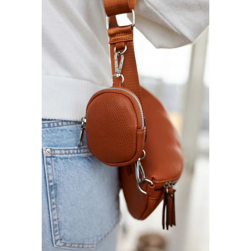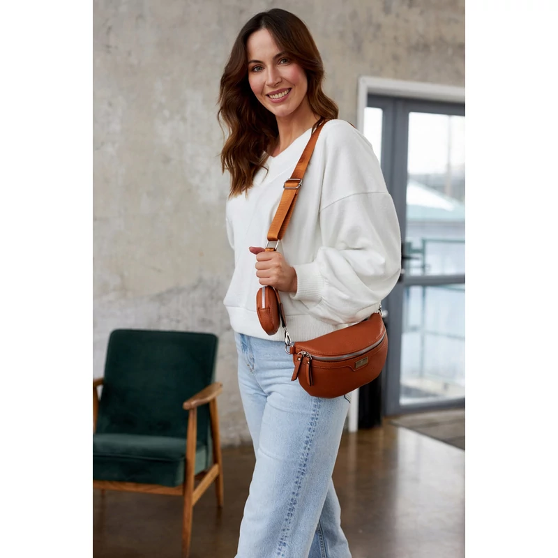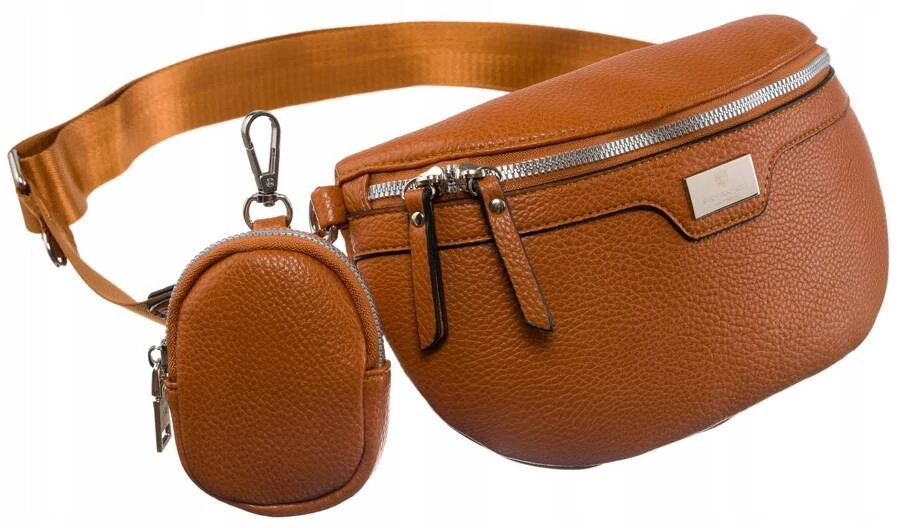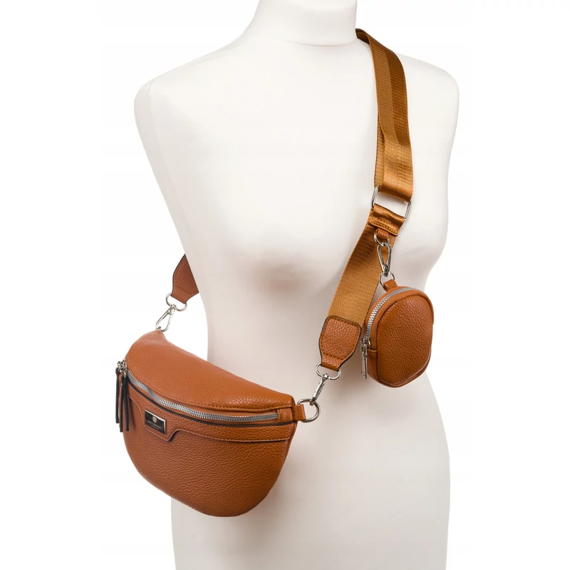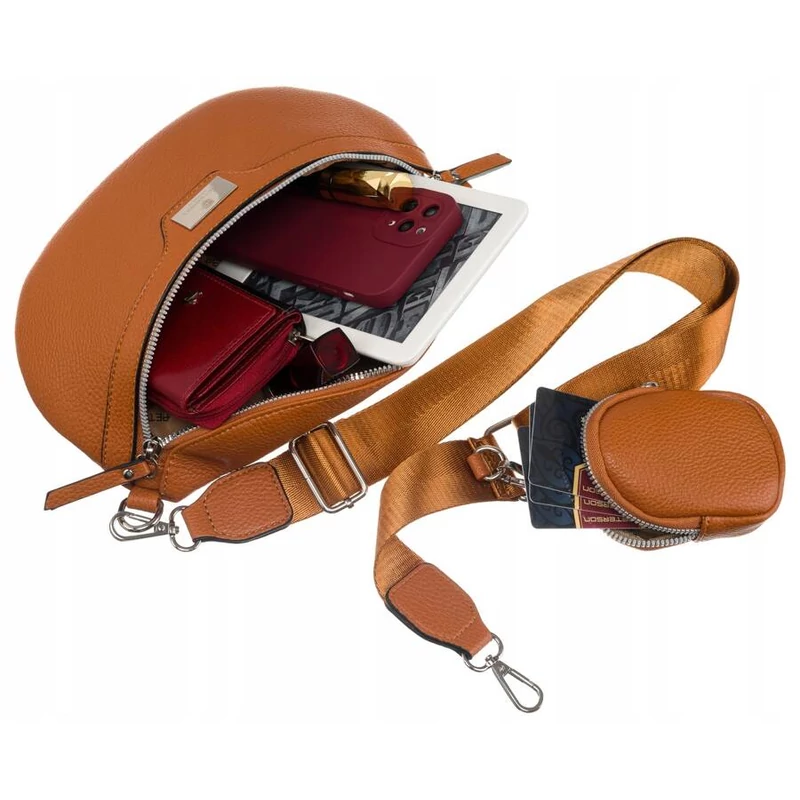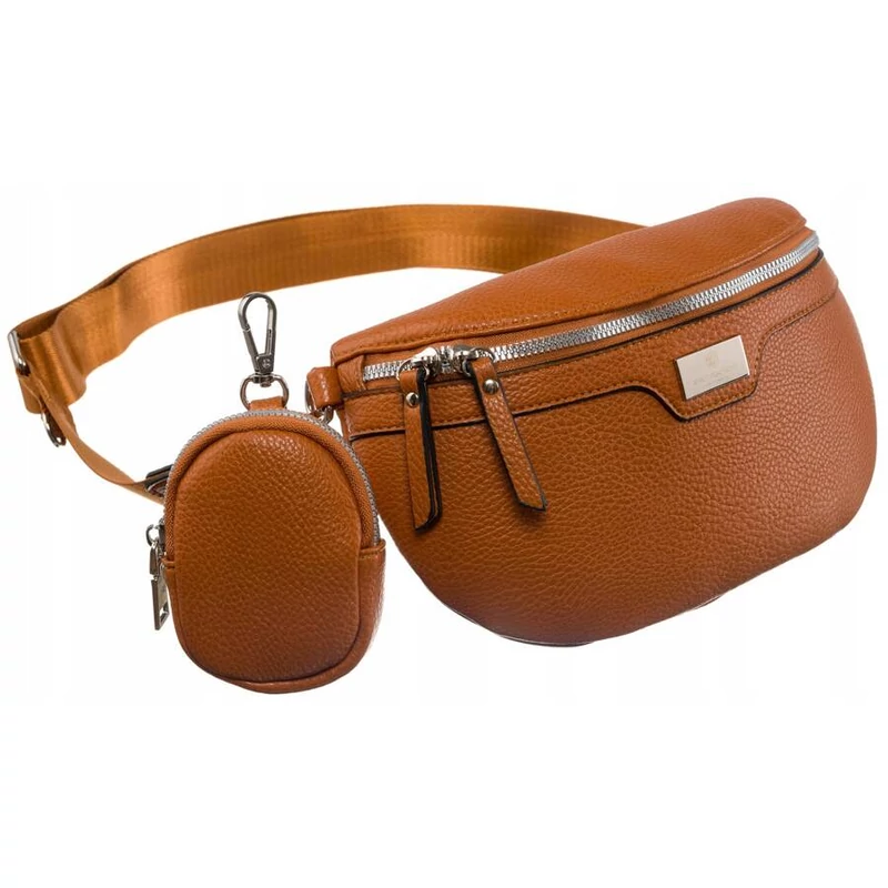 Elegáns Női Övtáska/Oldaltáska + Praktikus kiegészítővel konyak színben