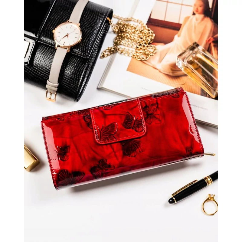 - Klasszikus szabás eredeti részletekkel Klasszikus stílusú pénztárca gyönyörű pillangó mintával. A modell vízszintes fekvésű, biztonságos és strapabíró retesszel van rögzítve, és a pénztárca elején arany márka logó is található;