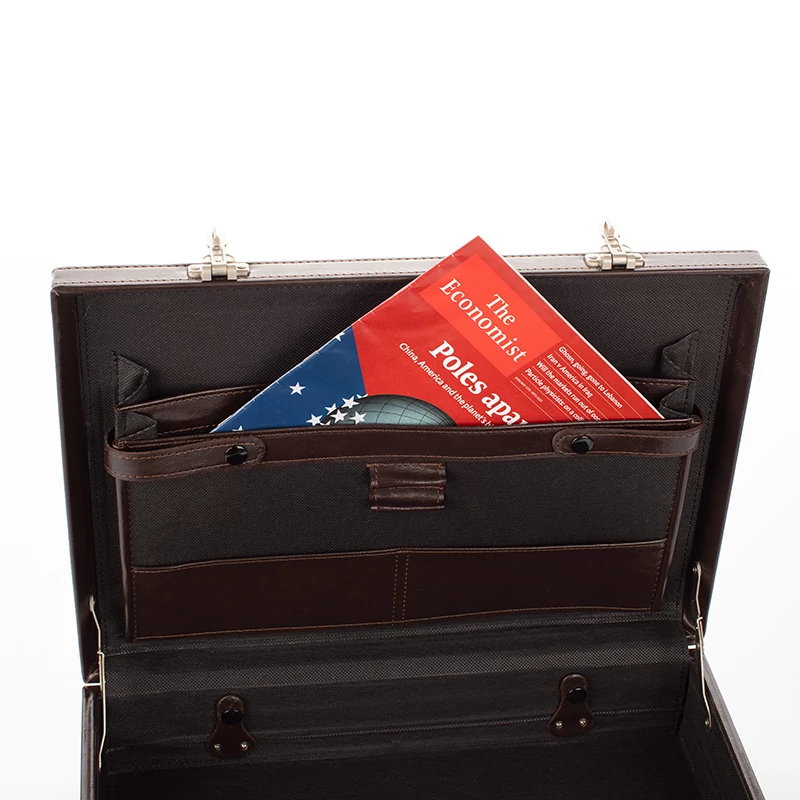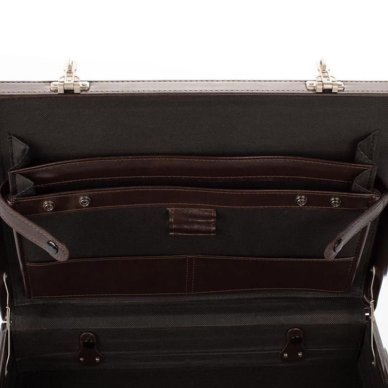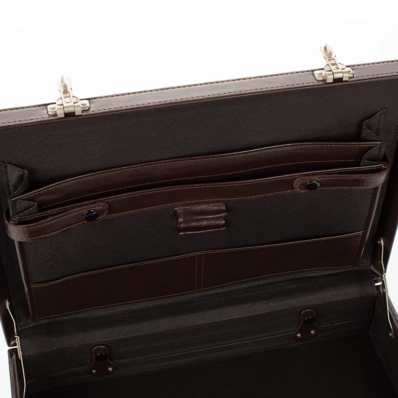 Belsejében irattartó zsebek és egyéb fiókok találhatóak, amik kiválóak, íróeszköz, számológép, személyes irat tárolásra.