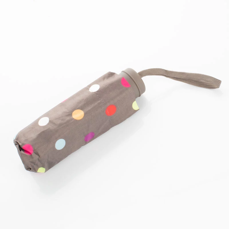 A Feeling Rain mini pöttyös női esernyő egy kompakt, stílusos és praktikus megoldás a szürke napokra. A könnyű, de tartós anyagból készült esernyő méretei ideálisak a hétköznapi használatra. Az elegáns szürke szín és a finom pöttyök díszítik az esernyőt. A Feeling Rain mini pöttyös női esernyő túlmutat az alapvető védelemnél: stílusos megjelenéssel is rendelkezik!