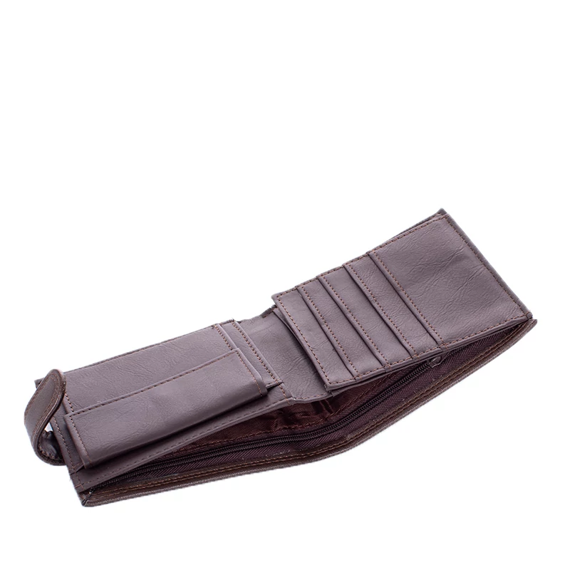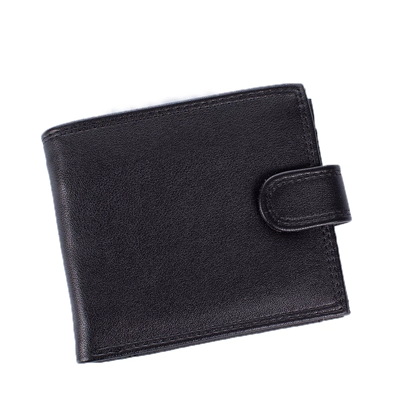 Elegáns kivitelű fekete férfi pénztárca, mely külső patentos pánttal zárható.