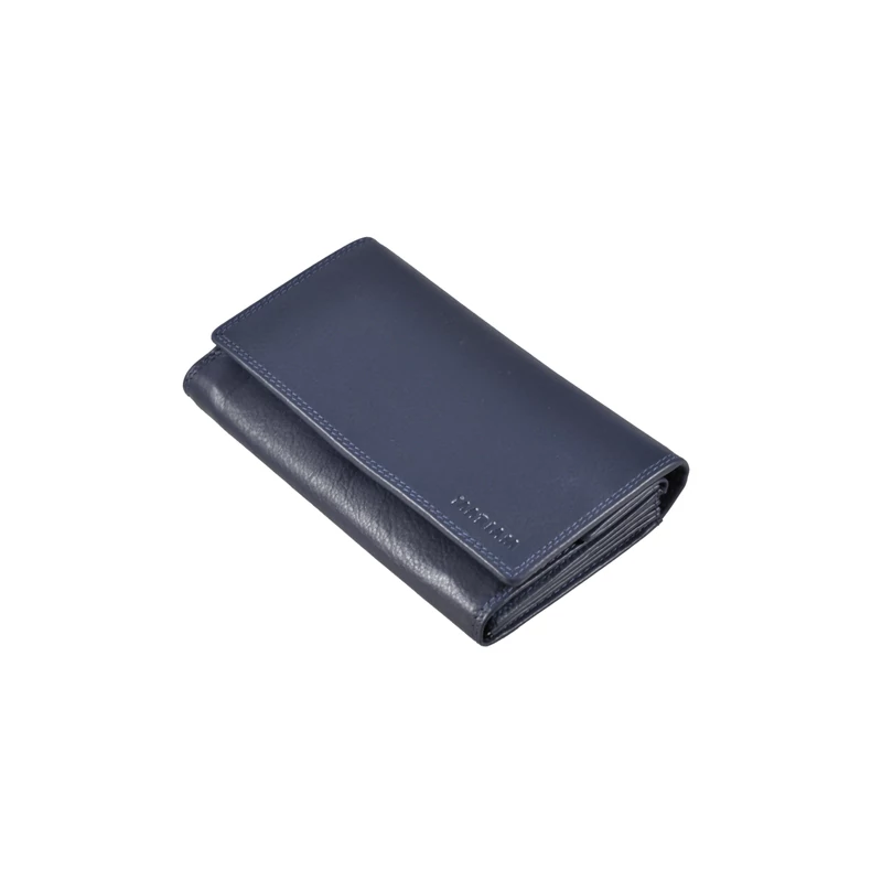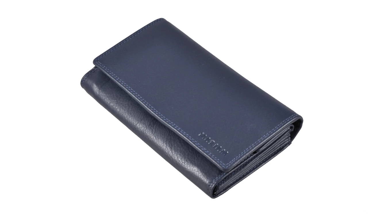 Nagy méretű női pénztárca, mely minőségi nappa bőrből készült. Fedele patenttal nyitható. Belsejében 5 rekeszes papírpénztartó, egy patenttal nyitható aprópénztartó rész, 6 db kártyatartó, egy igazolványtartó és egy cipzáras zseb található. A pénztárca hátulján egy további kis zseb el van helyezve..