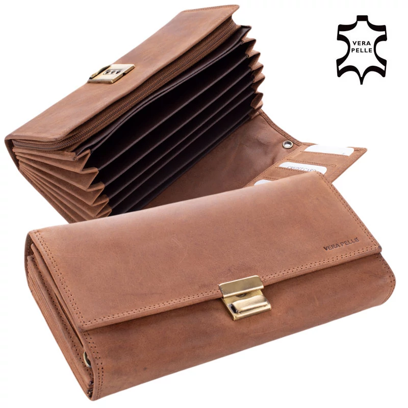 GIULIO NATURALE Valódi bivalybőr pincér pénztárca világosbarna színben