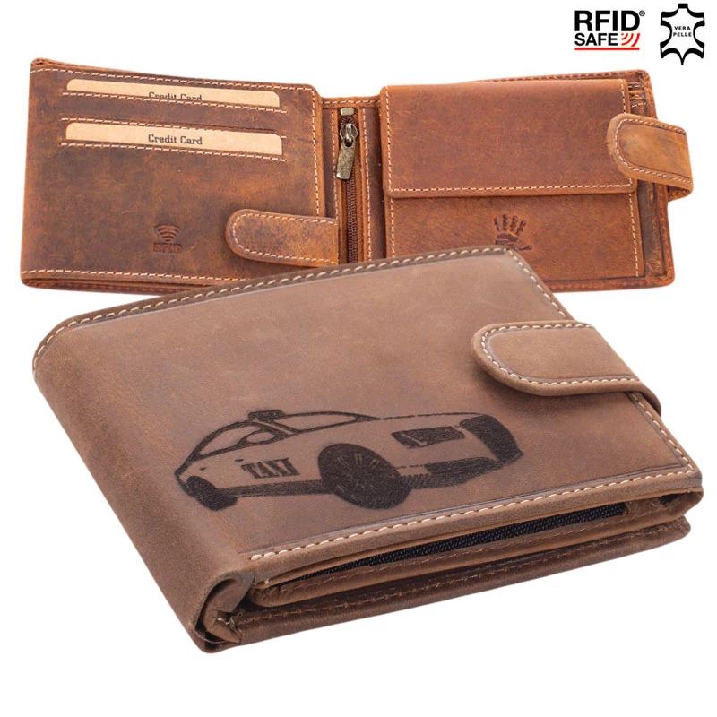 Ez a GIULIO traktor mintával ellátott pénztárca, már első használattól kezdve egy igazán kedvelt darab lesz. A GIULIO pénztárcák kézzel készültek a legkiválóbb minőségű marha bőrből. Egyedi mintával és RFID azaz elektronikus adatlopás elleni védelemmel van ellátva. Sok embernél fontos szempont, hogy GIULIO márkajelzéssel nyomtatott, újrahasznosított díszdobozban kapják kézhez a vásárlók, a pénztárcát, ezért ajándékba is kiváló választás lehet.