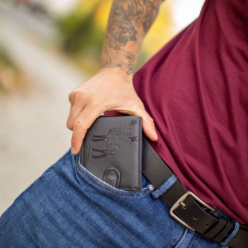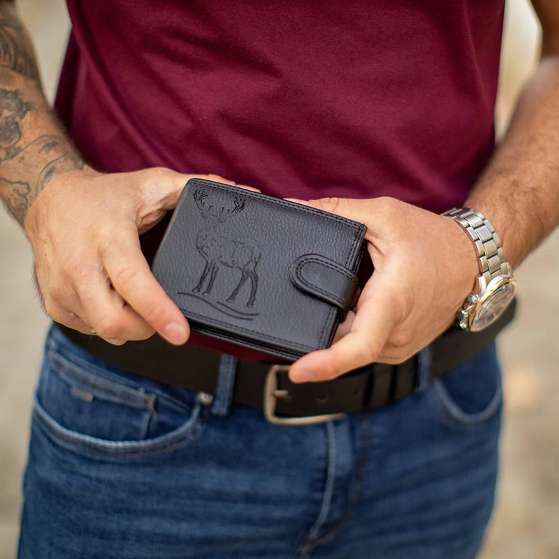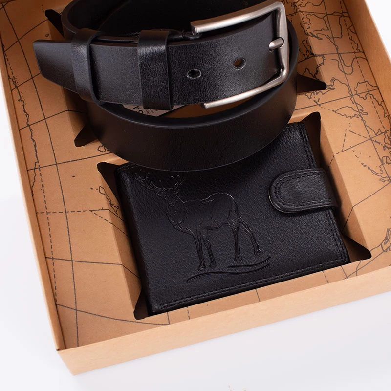 GIULIO szarvas mintás pénztárca és öv vadász ajándékcsomag