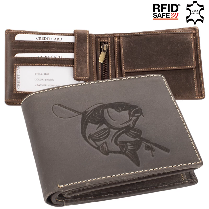 GIULIO valódi bivalybőr horgász férfi pénztárca díszdobozban RFID rendszerrel