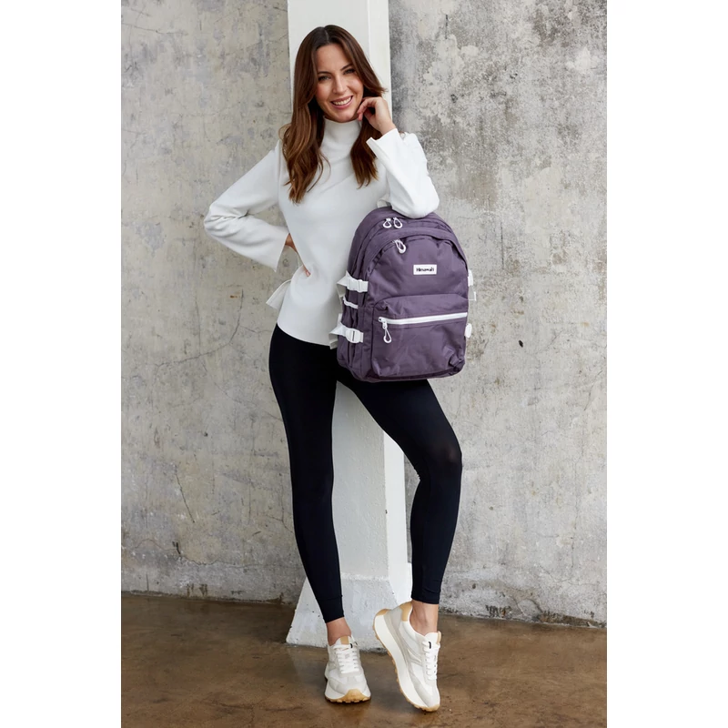A hátizsák 2 oldalpánttal rendelkezik kompressziós funkcióval . Lehetővé teszik, hogy a hátizsákot a hordozott tartalomhoz igazítsd.