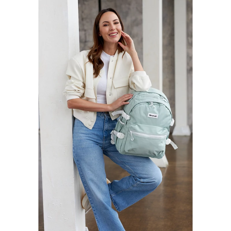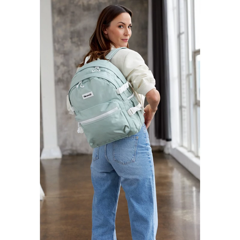 Ezenkívül a hátizsák elején található egy praktikus és tágas cipzáras zseb, valamint két oldalzseb egy palack vagy kulacs számára.