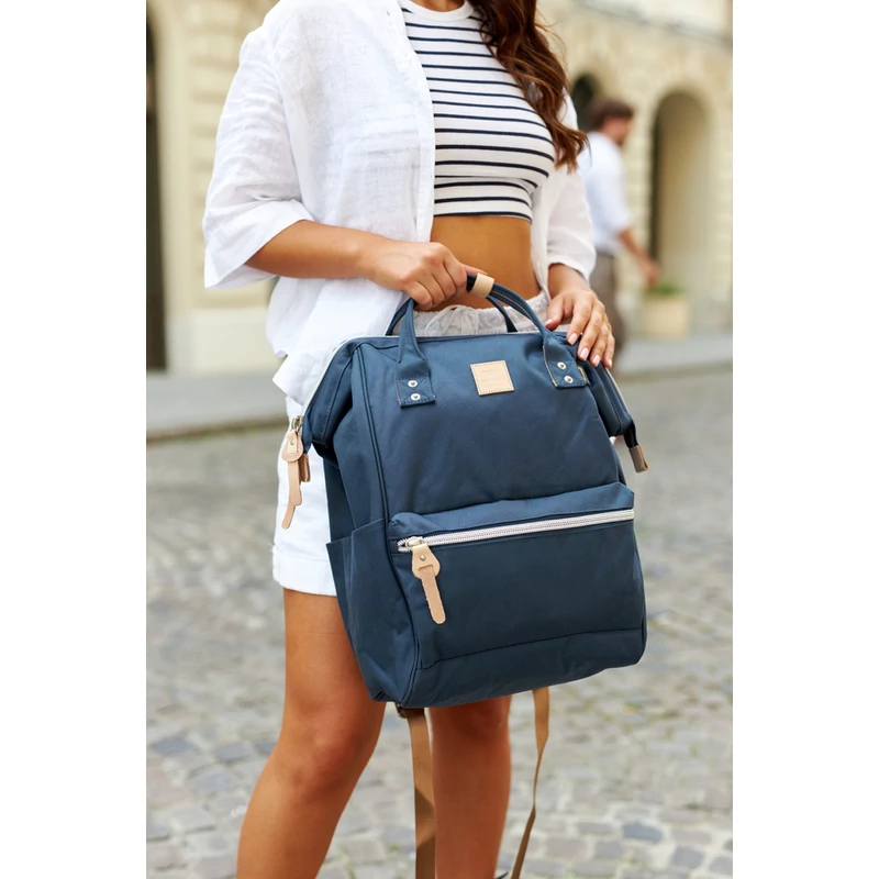 A hátizsák A4-es formátumú . A nagyszámú zseb és rekesz lehetővé teszi az összes szükséges tárgy, például telefon, pénztárca, poharak, kulacs, kis esernyő és sok más elrendezését.