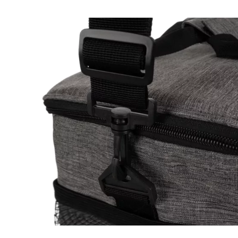 - MŰSZAKI ADATOK - szín: szürke; anyaga: oxford szövet + nylon + ökobőr; belső burkolat: fólia; töltelék: EVA hab; szíj: nylon + PP; hűtőbetétek: ABS; űrtartalom: 20 l; vízálló: igen; szigetelt: igen; állítható derékbőség: 55 - 104 cm; méretei: 37 x 24 x 24,5 cm; súly: 0,95 kg; súly a csomagban: 1 kg.