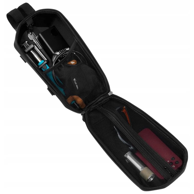 A cipzáras rekesz belsejében 2 hálós zseb található . Az egyik teljesen cipzáros, a másik nyitott. A táska karabinerrel is rendelkezik, amelyre rögzítheti a kulcsait.