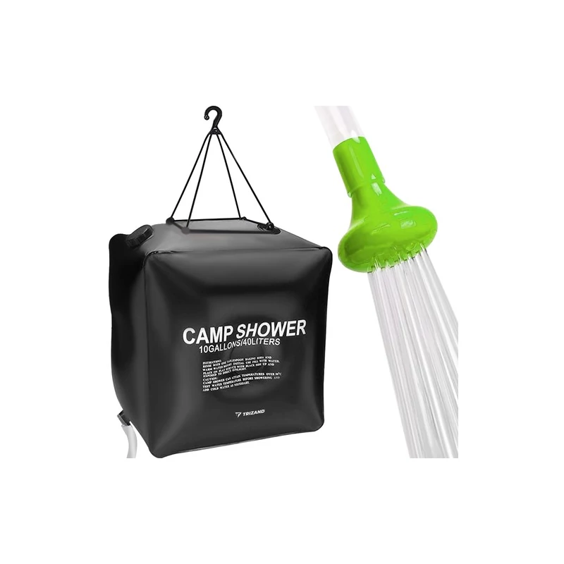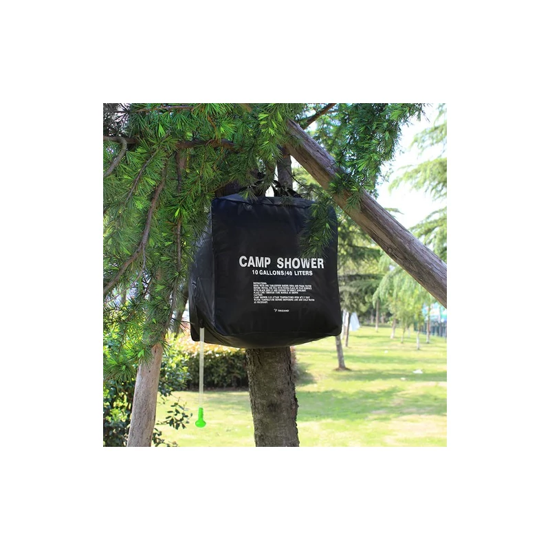 A fekete anyagnak köszönhetően a zuhany jól elnyeli a fényt és a víz gyorsan felmelegszik a napon. Anyaga vízálló, a szoros dugó pedig biztonságossá teszi a zuhany tárolását.