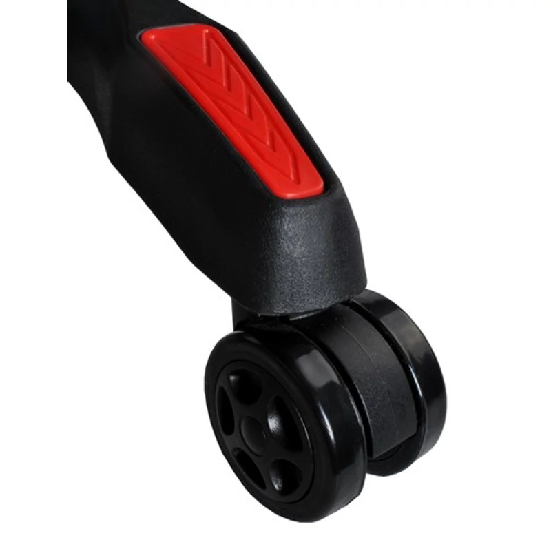- MŰSZAKI ADATOK - szín: fekete és piros; maximális terhelés: 150 kg; anyaga: fém + EPE hab + ökobőr; kerekek: szilikon; teljes méretek (hossz/szélesség/magasság): 124/63/63cm; súly: 19,5 kg; súlya csomagolással: 19,8 kg