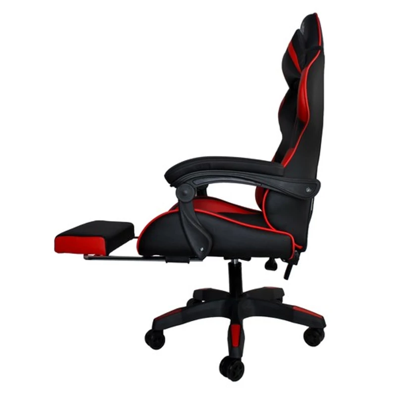 - VÖRÖSÜLÉS – VONZÓ KIJELENTÉS – a fotelt érdekes és vonzó megjelenés jellemzi; sportos, jellemzően férfias stílusban van fenntartva; A gondos megmunkálás és az esztétikus kivitelezés a részletekre való odafigyeléssel kétségtelenül előnyt jelent. A szék széles, kanál ülőrésszel rendelkezik, amely szabadságot és kényelmet biztosít a használat során. Jól tartja a felhasználót extrém játékok közben. A szék csúszásmentes karfákat is használ, amelyek ellenállnak a deformációnak; kényelmes támaszt nyújt, csökkenti a könyök fájdalmát, valamint a gerinc terhelését. Az üléshuzat eltávolítható és alacsony hőmérsékleten mosható, így tökéletes állapotban tartása nem jelent gondot.