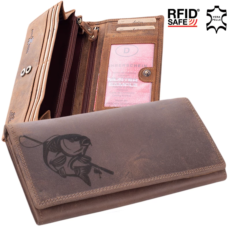 Különleges Brifkó horgász pénztárca barna színben RFID rendszerrel