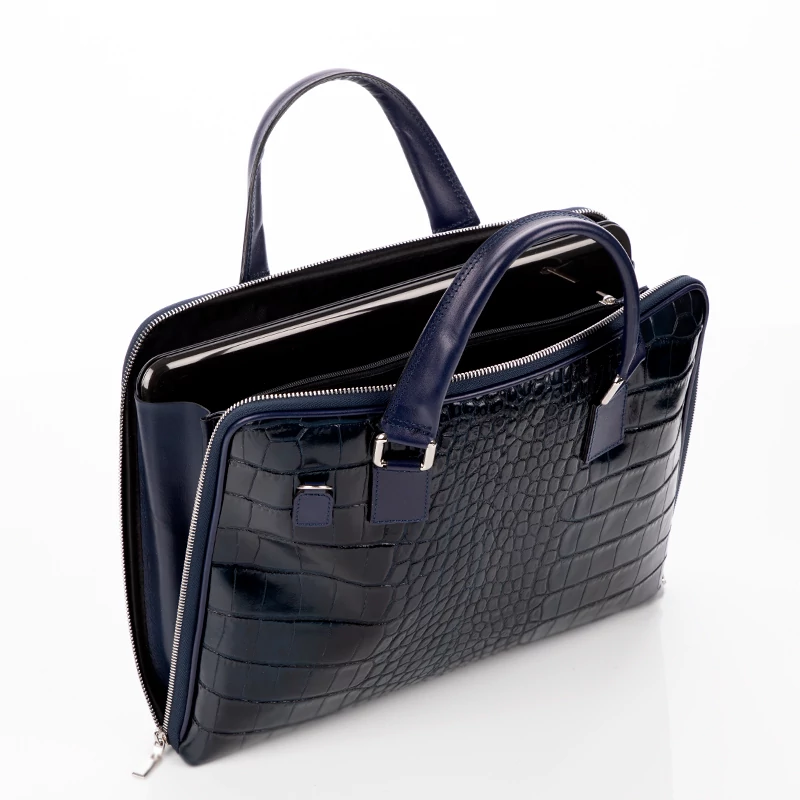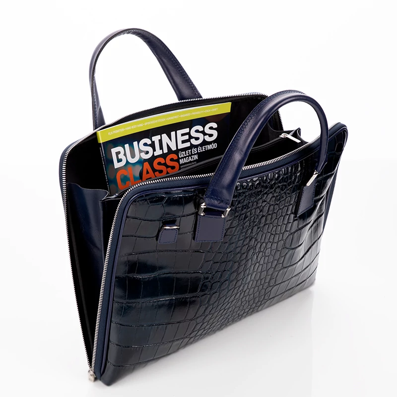 Elegáns és nőies laptoptáska, kifinomult nőknek. Ez a sötétkék laptop tartós táska valódi bőrből készült Olaszországban, így a magas minősége garantált. Szép és elegáns üzleti táska, minden hölgynek, akár egyetemről vagy munkáról legyen szó, ez a táska biztos kísérője lehet a mindennapjainknak.