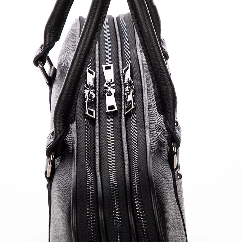 Valódi bőr üzleti táska barna színben, amely  3 különálló rekeszeből áll, nagyon praktikus elrendezésű. A középső cipzáras rekesz egyterű, ide tehetjük a laptopot, vagy táblagépet. A 2 szélsőben pedig cipzáras és nyitott oldalsó zsebek vannak még. Iratok és laptop számára tökéletes táska. Kis kézi fogója és rácsatolható hosszú pántja is van, aminek hosszúsága állítható.