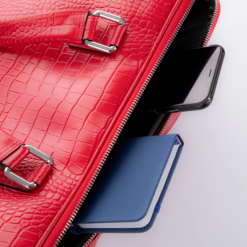 Valódi bőrből készült, egyedi, olasz készítésű üzleti táska. Belül egy cipzáras zsebbel osztott, két oldalában is kisebb zsebek vannak. Hordható hosszú pánttal is, mely rácsatolható a táskára.