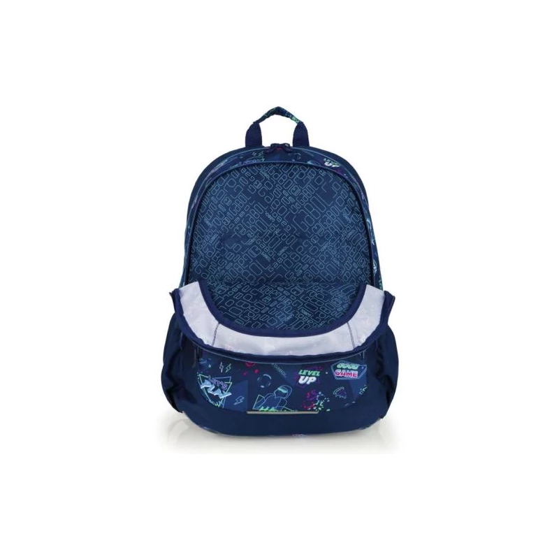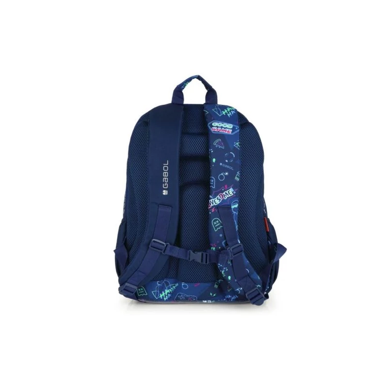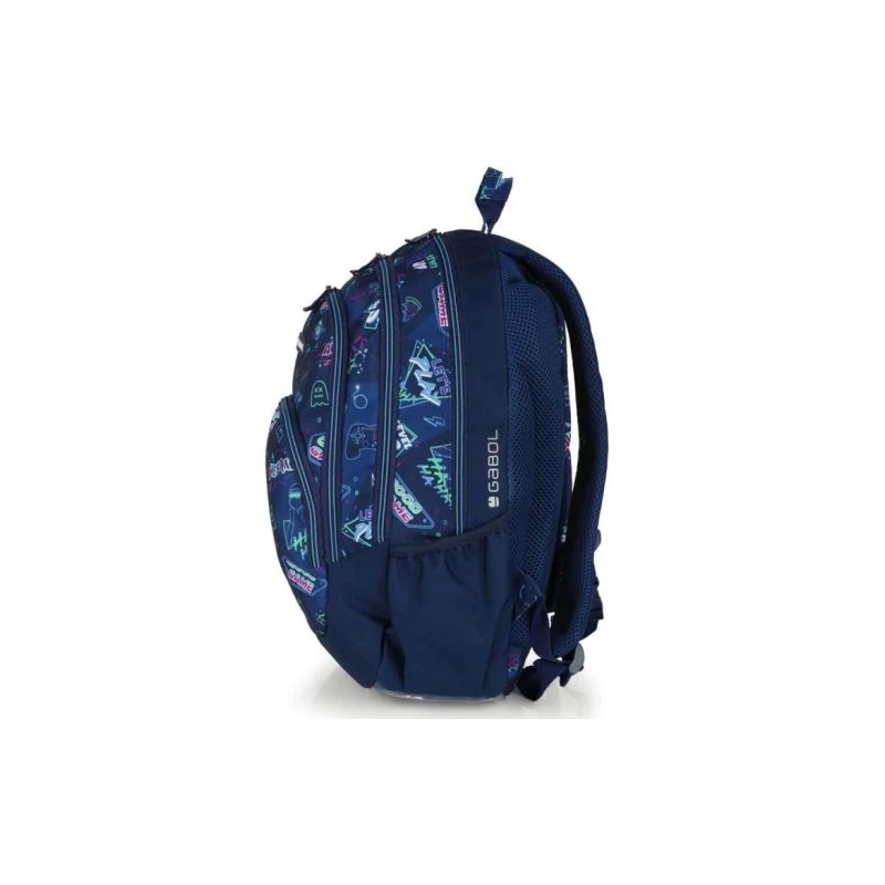 Gabol Loot hátizsák. Kézben, és állítható, szivacsos vállpántjainak, valamint szintén szivacsos (ergonomikus) hátrészének köszönhetően háton egyaránt kényelmesen hordható. A hátizsák két fő-, két elülső mellék-, és két oldalsó rekesszel rendelkezik. Nagyobbik főrekeszében találjuk a névcímkét és egy mappák tárolására alkalmas zsebet, másik főrekeszében pedig egy kisebb zseb kapott helyet. A két elülső mellékrekesz remek hely egyéb iskolai dolgaink, valamint személyes tárgyaink tárolására. Két oldalsó rekesze, a gumírozott zsebeknek köszönhetően lehetőséget kínálnak egy-egy kisebb palack tárolására.