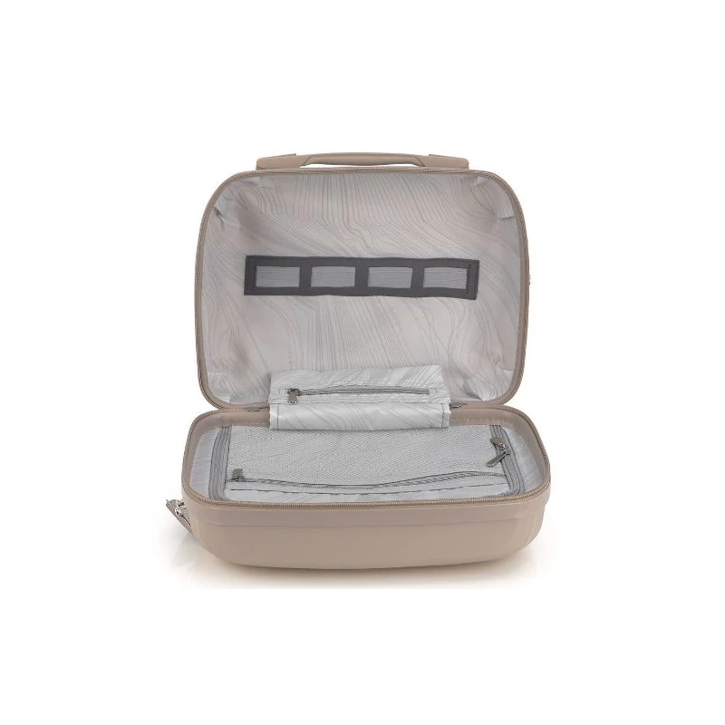 A Gabol Kiba bézs színű keményfedeles, cipzáras piperetáska rugalmas polipropilén anyagból készült. A kozmetikai táska különféle kozmetikumok, pipereholmik elhelyezésére ad lehetőséget. Belsejét hálós és cipzáras extra zsebek gazdagítják, valamint gumis rögzítő pántok segítik a pakolást, rendezést. A táska belseje cipzáras megoldással két részre osztható. A beauty táska bőröndök húzószerkezetére ráhúzható a hátulján található gumis pánt segítségével.Etáska - minőségi táska webáruház hatalmas választékkal